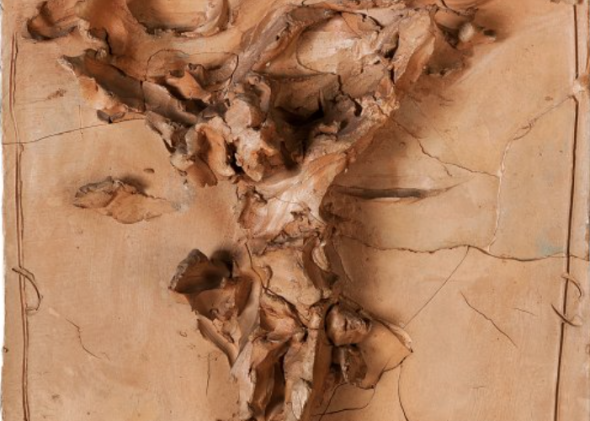Fra le opere più importanti si segnalano una Piazza d’Italia di Giorgio de Chirico (olio su tela cm 60×50), una palma di Mario Schifano (Oasi 1967, spray e smalto su tela cm 200×70, provenienza: Marconi Milano) e una delicata crocifissione di Lucio Fontana (Cristo 1955, terracotta cm 55×35) che ha conquistato al copertina del catalogo.