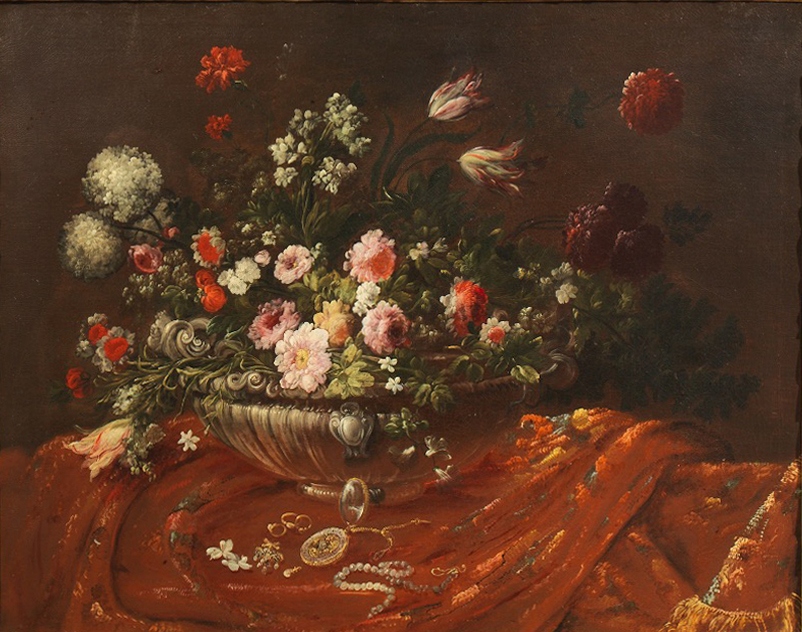 In asta anche un’ampia selezione di nature morte. Si segnalano Frutta e fiori all’aperto con una figura femminile e Selvaggina e un cacciatore stimati rispettivamente 25.000/35.000 e 15.000/20.000 euro. Differenti sono le scuole locali che rappresentano questo genere. Per la scuola romana un inedito Agostino Verrocchi di Frutta e ortaggi su un piano nel catalogo per 10.000/15.000 euro. Napoletana è l’opera di Giuseppe Recco, Natura morta di pesci stimata a 30.000/50.000 euro. Per la scuola bolognese invece una Composizione di fiori di Antonio Mezzadri in catalogo per la cifra di 10.000/15.000 euro.
