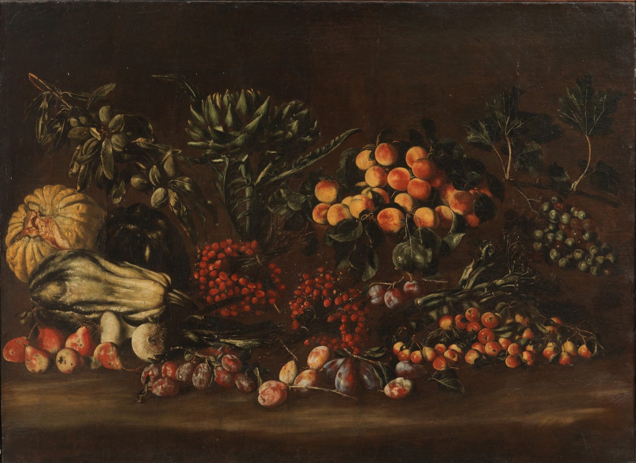 Agostino Verrocchi, NATURA MORTA CON FRUTTA E ORTAGGI SU UN PIANO