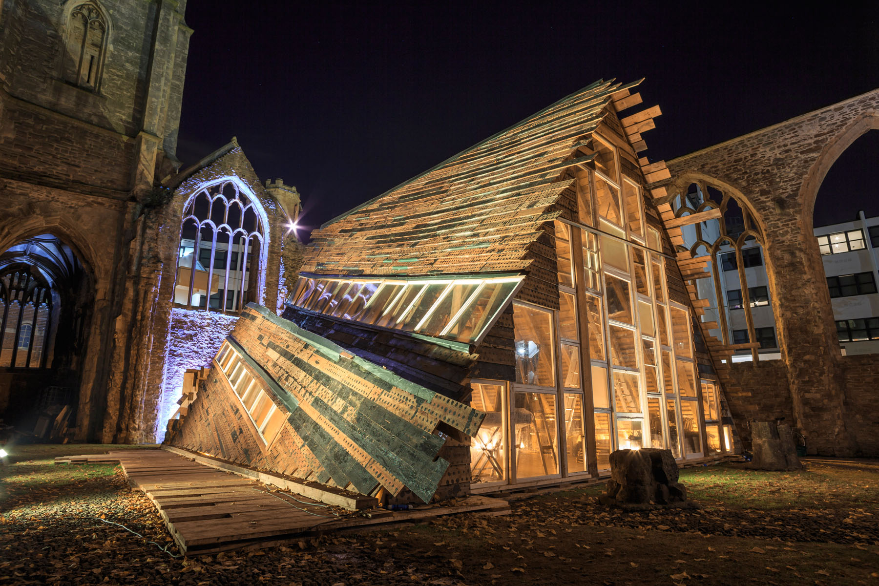 Il luogo di questa installazione è il medievale Temple Church di Bristol, nel Regno Unito. Originariamente costruito dai Cavalieri Templari ma bombardato durante la Seconda Guerra Mondiale nel 1940. Ne rimase solo uno scheletro. Theaster Gates utilizzò materiali recuperati da siti vicini e creò una struttura all’interno delle pareti vuote dell’ex chiesa. Usò, per esempio, una porta appartenente ad una vecchia fabbrica di cioccolato e mattoni provenienti da case demolite.