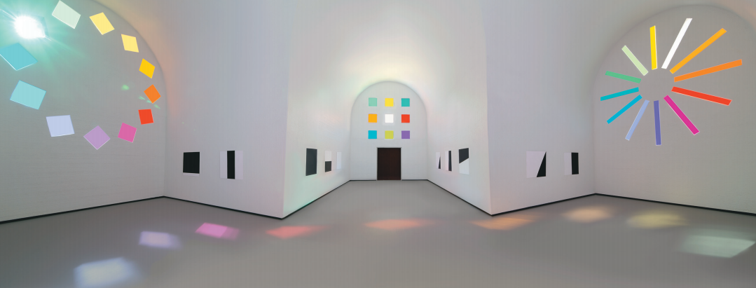 Il lavoro site-specific Untitled realizzato in luce verde, blu, rosa, dorata e ultravioletta attraversa l’intero spazio della chiesa. Suggerendo la progressione naturale della luce notte – alba – giorno.