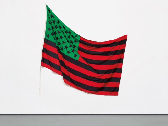 Sin dalle elaborazioni di Boetti nelle proprie “mappe”, passando per la celebre bandiera statunitense di Jasper Johns, il vessillo nazionale degli US è un emblema iconico della cultura pop e del mondo dell’arte. La rivisitazione dell’artista David Hammons è un ulteriore tassello alla storia artistica di questo elemento ed unisce la struttura tipica della bandiera americana con i colori che caratterizzano le nazioni del continente africano.