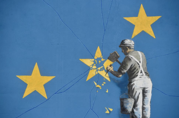 Tuta, scala, secchio, martello e scalpello. E’ intento a distruggere una stella. E’ l’operaio nato dalla creatività di uno dei più famosi street artist in circolazione. Il fondo azzurro non è un poetico fazzoletto di cielo, ma la bandiera dell’Europa. Così Banksy racconta la Brexit. Il nuovo murale si trova vicino al porto di Dover e arriva proprio nel giorno delle elezioni francesi, svoltesi nella paura della ‘Frexit’…