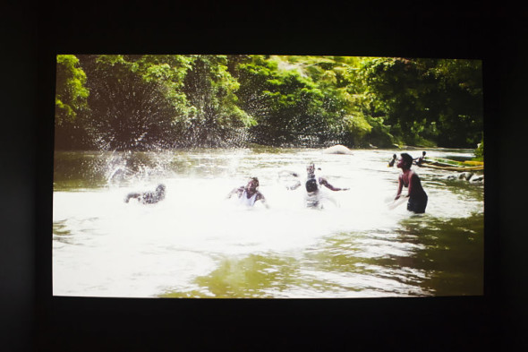 Accanto a questi approcci radicali, che letteralmente si gettano nel vissuto quotidiano, la sezione introduttiva propone anche riflessioni più “classiche”, legate all’elaborazione della conoscenza attraverso il libro d’artista, non solo esercizio di stile ma anche strumento critico: come emerge dal lavoro di Katherine Nuñez (1992) e Issay Rodriguez, artiste filippine che con l’istallazione In between the lines, rielaborano i manuali d’apprendimento scolastico giudicati eccessivamente nozionistici e impostati a una logica d’istruzione funzionale solo al mercato del lavoro; con i loro libri in tessuto con applicazioni di ricami, le artiste invitano a “manipolare il testo”, a leggere “fra le righe”, come da titolo, utilizzando il proprio senso critico, senza limitarsi alla pura nozione. Un’istallazione che dimostra l’importanza dell’artista nella società, e la presenza dell’arte come strumento vivo di decodificazione della realtà.