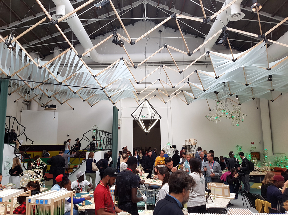 Ho voluto attendere prima di cedere al primo istinto e raffreddare il giudizio per cercare ragioni che la mia debole mente non trovava. Niente da fare, nisba, un progetto cretino con dei lampi di imbecillità, per dirla alla Marinetti. Già al primo impatto una metaforica orticaria ha cominciato a manifestarsi alla vista di Green light-An artistic workshop di Olafur Eliasson. Il progetto -in collaborazione con Emergency e la Georg Danzer House di Vienna, con la benedizione della Prefettura e del Comune di Venezia- prevede che ottanta tra richiedenti asilo e rifugiati, naturalmente su base volontaria e con solo rimborso spese, assemblino per tutta la durata dell’esposizione le lampade Green light, kit progettato dall’artista, poste in vendita a 250 euro per finanziare altri progetti delle due Ong. Niente da fare, c’avimm a rassegnà, questo è il mood che pervade il contemporary e la Biennale tutta, non solo il concept di Christine Macel.