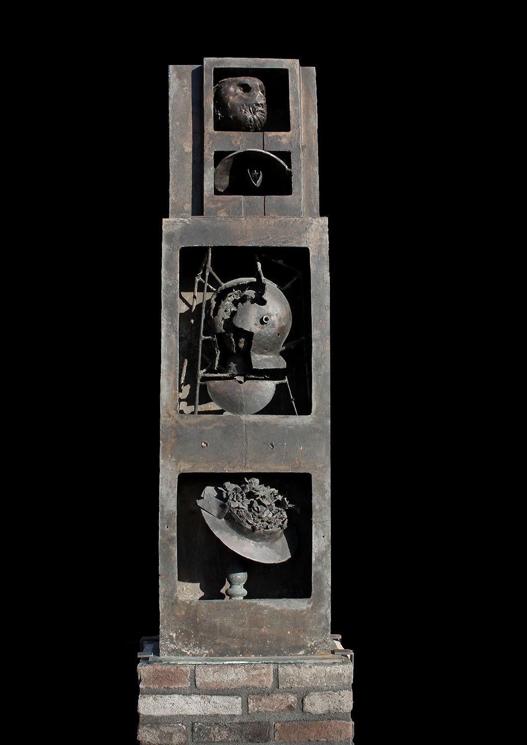 In contemporanea nascono opere drammatiche come Gli uomini del Lager (1957), eseguita in ricordo della guerra e dopo la visita ai campi di Auschwitz, di cui si ammira in mostra il bozzetto; corpi scarnificati in scatole-sepolcro provviste di ante che si possano tramutare in giochi di chiuso-aperto, dentro-fuori, ripresi poi in Fiori chiari ispirata alla via milanese, in Omaggio a Gagarin, eseguito dopo il viaggio a Mosca, opere del 1969, e ne I coniugi del n. 7 (1972) inseriti in una finestra con vere e proprie persiane, da un ricordo rimasto impresso dall’infanzia.