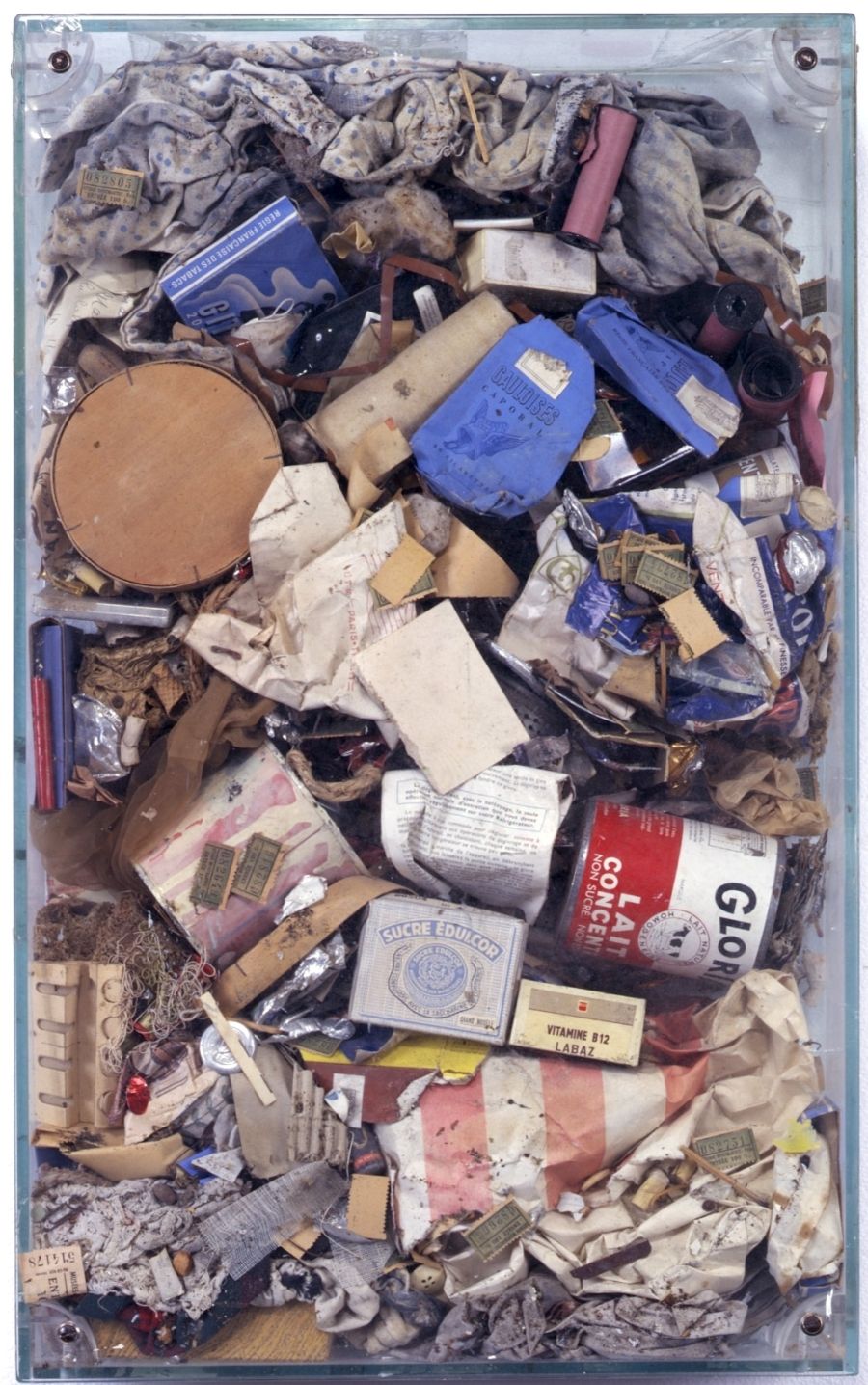 Raccolta e collezione. Ecco i concetti che si ritrovano sia nei Cachets, in cui l’artista fa uso di obliterazioni con timbri a inchiostro misti a interventi pittorici, sia nelle Accumulations di oggetti e utensili. A opere delle serie Poubelles e Inclusions (sia in cemento sia in resina) sono affidate invece le riflessioni sul concetto di scarto o resto, anche nella sua forma archeologica.