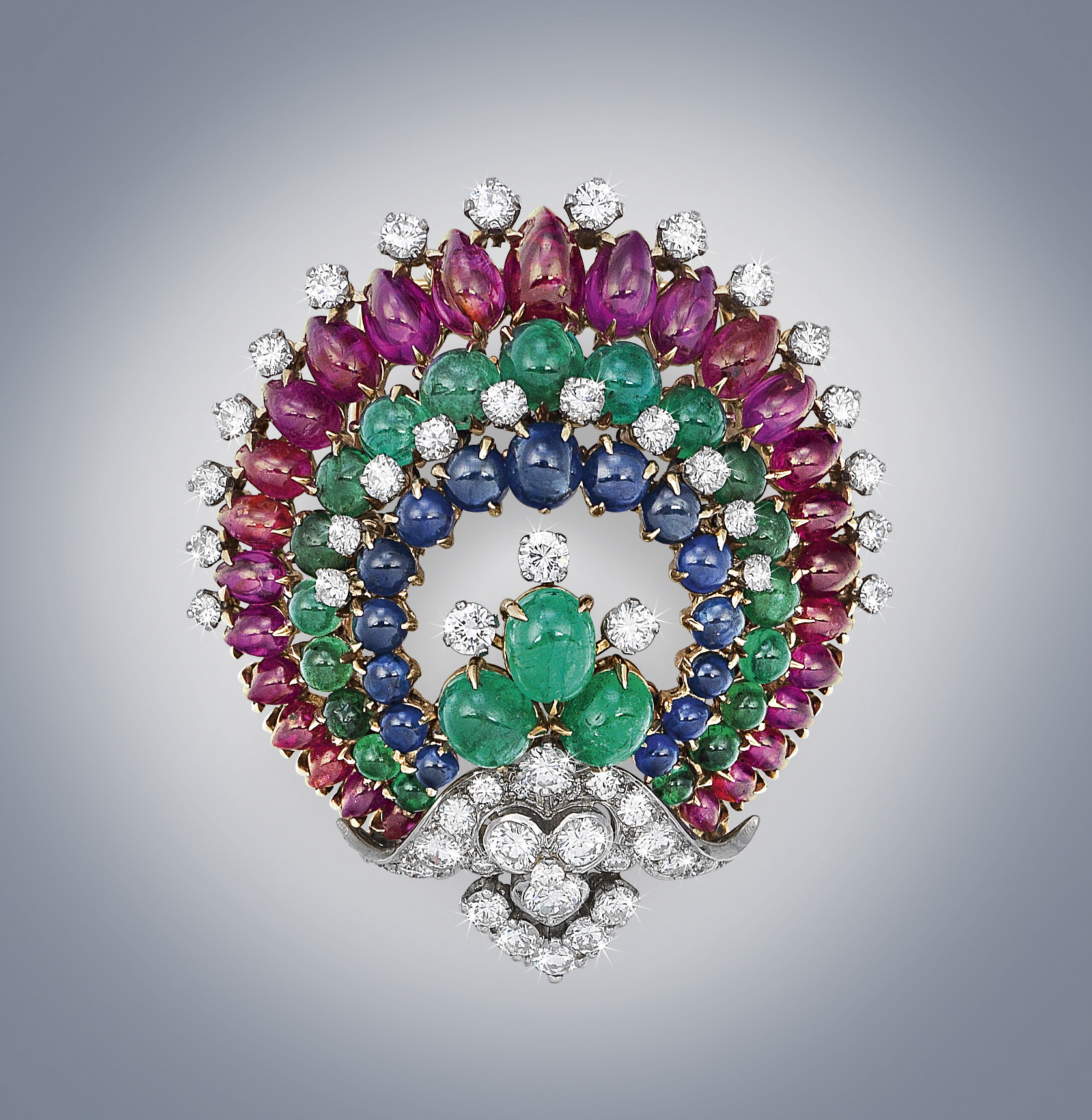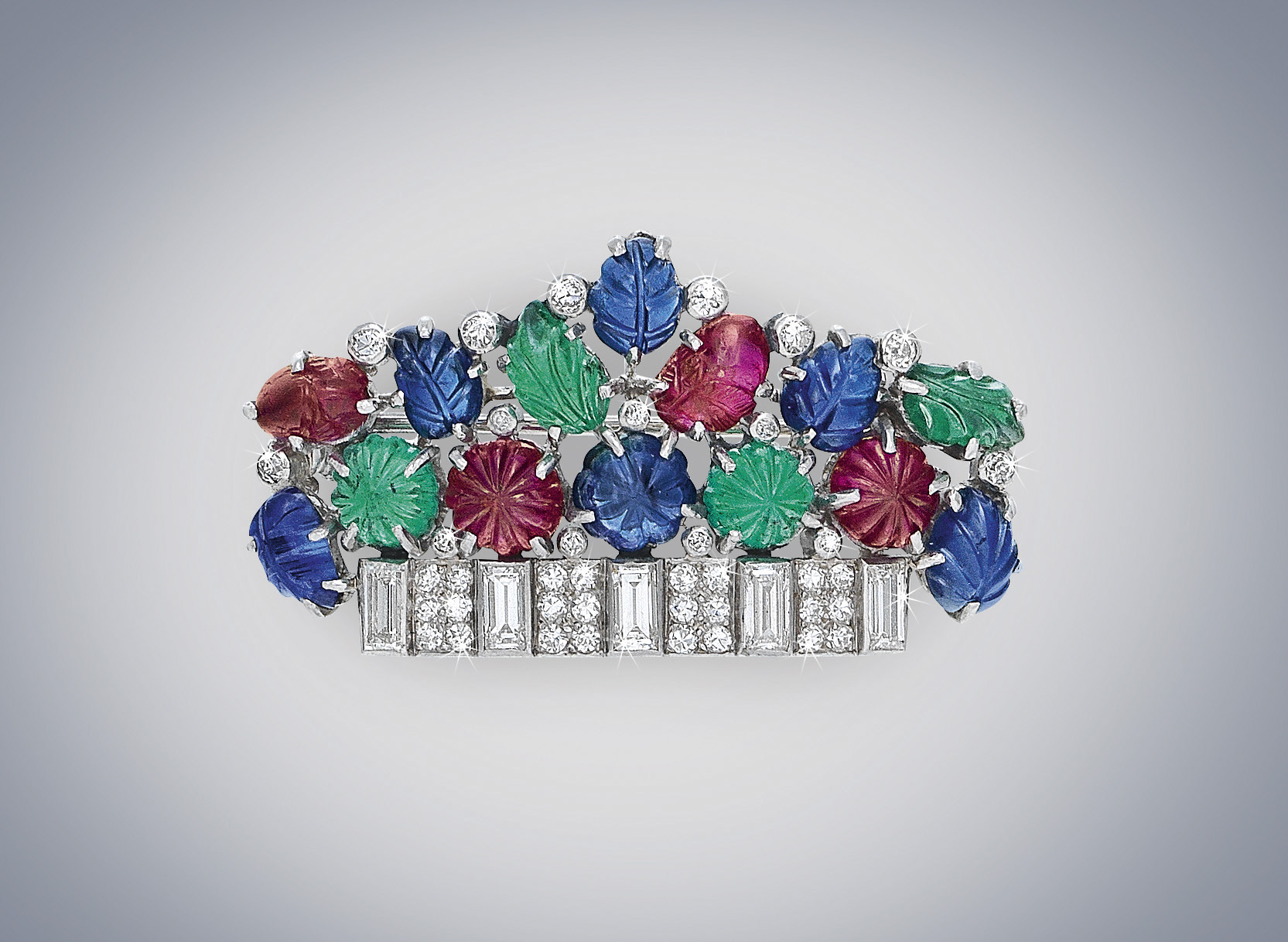Orchidee, mughetti, viole, girasoli e tulipani: gioielli a fiore con pietre di diverse forme e colori verranno offerte nell’asta di gioielli del 1 giugno 2017: Panier Fleuri – così si chiama la spilla in oro bianco di Boucheron con rubini, zaffiri, smeraldi e diamanti, realizzata intorno agli anni Trenta e stimata tra i 12.000 ai 16.000 Euro. Orchidee per la delicata spilla dell’orafo viennese E. Paltscho con calcedoni, rubini, brillanti e diamanti, valutata € 6.000 – 8.000 e coralli per la parure di orecchini a clips e collier con brillanti a forma di fiori (€ 8.000 – 10.000).