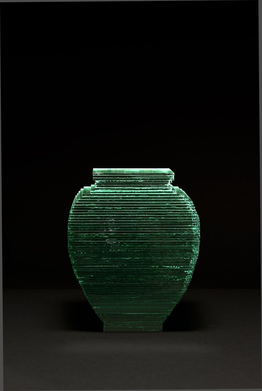 Un ponte simbolico tra Oriente e Occidente, tra antico e contemporaneo, dove le sculture in vetro industriale, unico materiale utilizzato dall’artista, dal colore verde-azzurro, che ricorda gli elementi naturali come l’aria e l’acqua, si pongono in dialogo con il ricchissimo patrimonio di arte giapponese ed orientale, raccolto in Giappone durante il periodo Meiji da Edoardo Chiossone.