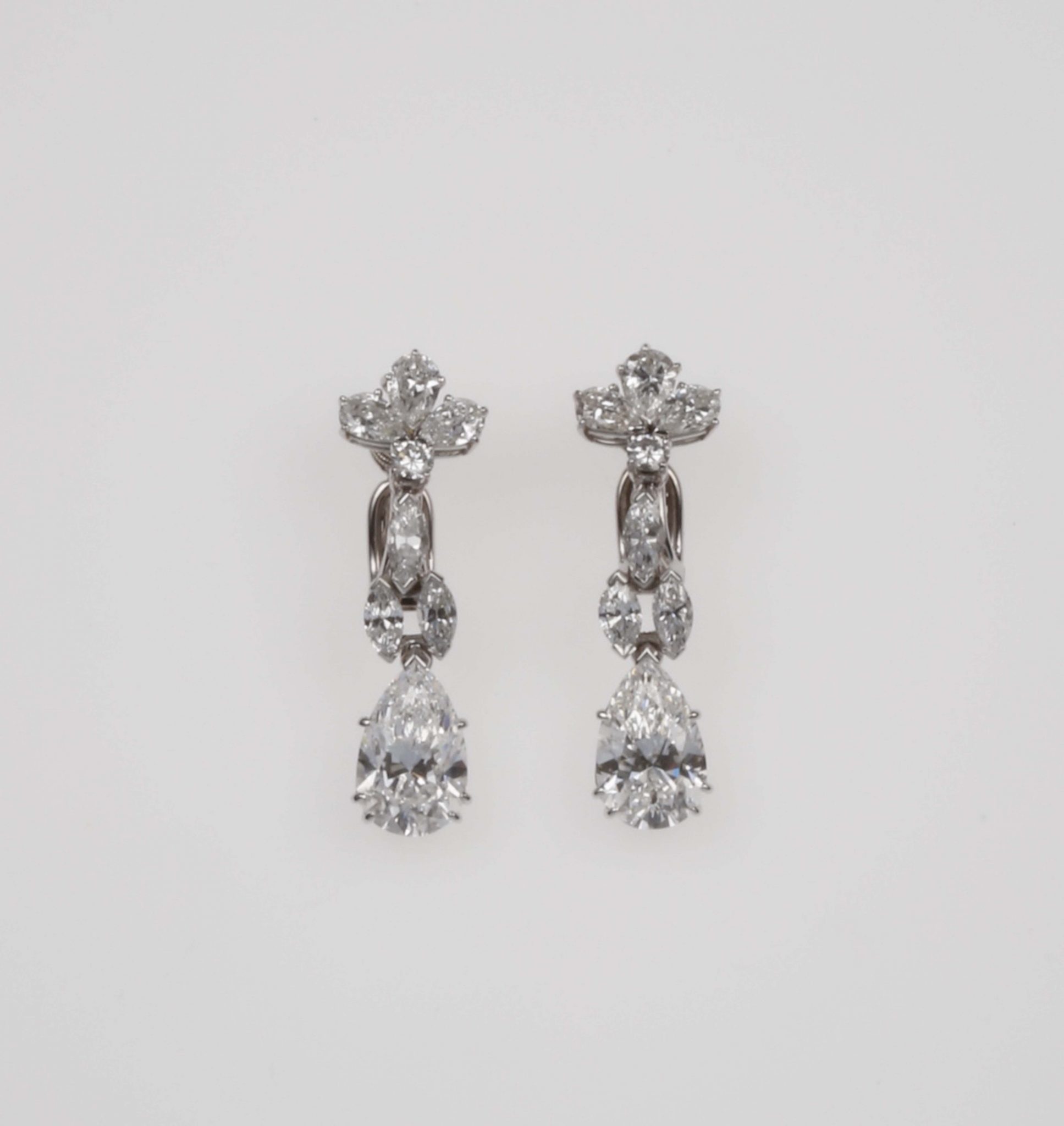 Orecchini pendenti con diamanti taglio a goccia e taglio navette per ct 5,85 circa totali