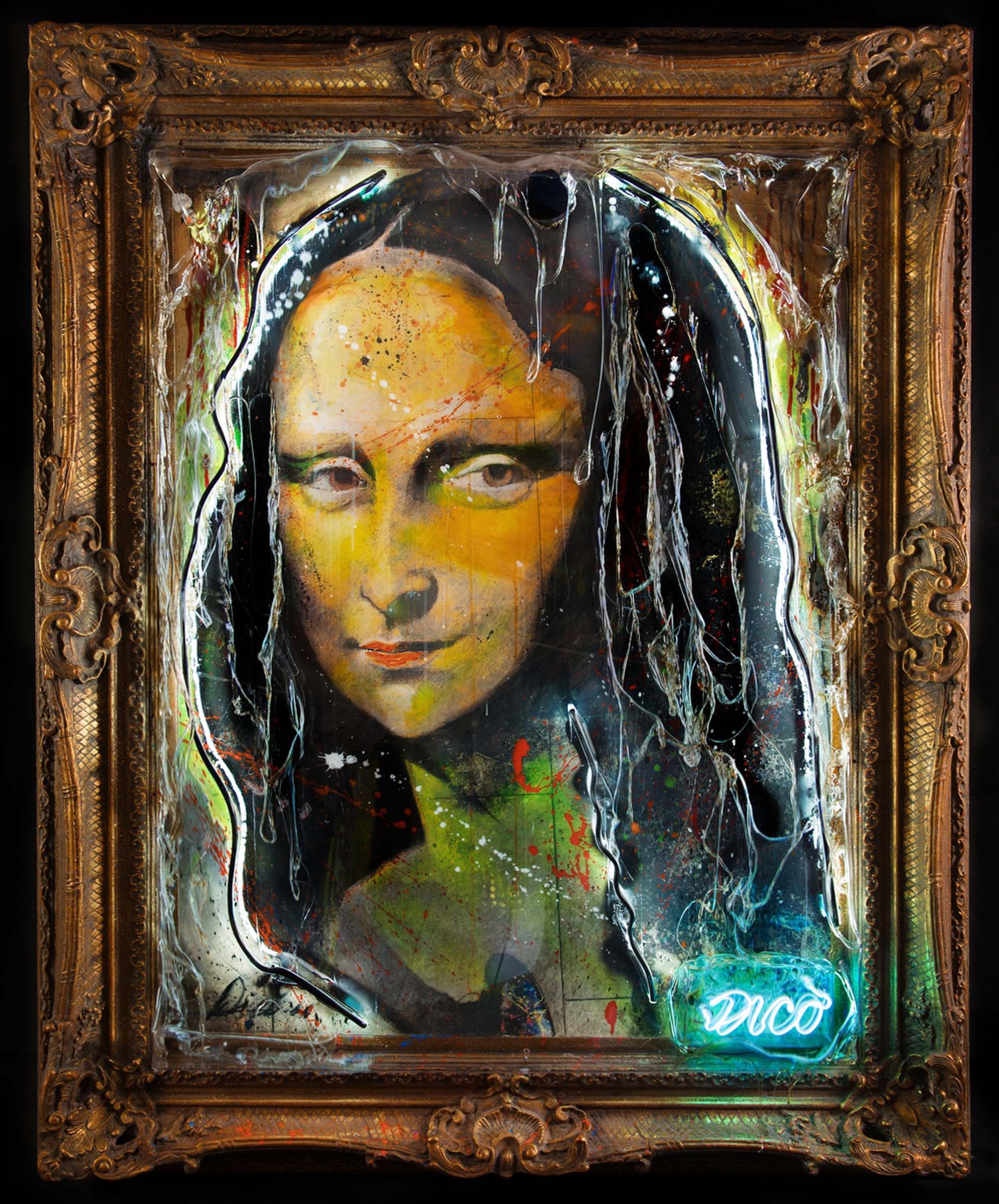 Il suo è un Olimpo di divinità moderne trasfigurate dal magma di un visione molto personale, che unisce la Gioconda a Fidel Castro, Gandhi a Kate Moss, passando per un infantile skyline di New York, un sentito omaggio a David Bowie e un’irriverente rielaborazione di Albert Einstein. Dicò gioca con il fuoco senza mai rendere vittima od olocausto i suoi soggetti: il suo intento non è certo iconoclastico ma, bensì, un purificarli dall’esposizione mediatica attraverso una pira di creatività.