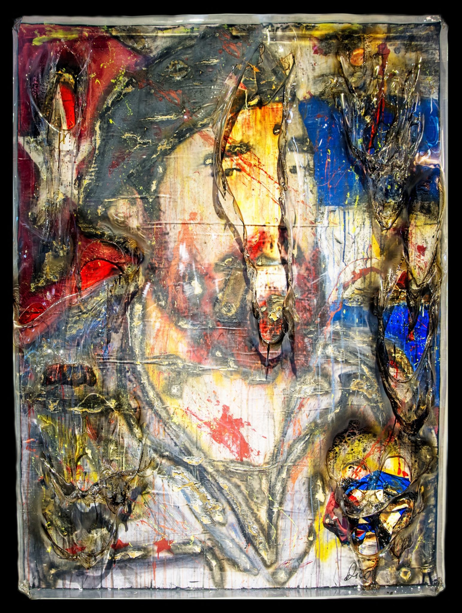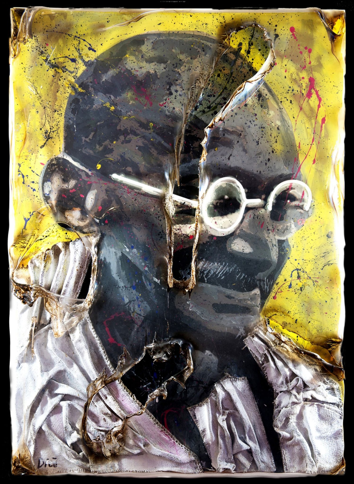 Enrico Di Nicolantonio, in arte – è il caso di dirlo – Dicò presenta la mostra Combustioni presso il Complesso del Vittoriano nella Sala del Giubileo, Ala Brasini: il suo è un immaginario che, con una spruzzata di Street Art e qualche sentore di Mimmo Rotella, riprende la Pop-Art di Andy Warhol e le combustioni di Alberto Burri ma facendo un processo inverso. I volti arcifamosi e i monumenti iconici, infatti, vengono avvolti in una lastra di materiale plastico che in seguito viene bruciata e piegata. È solo così che quel volto ipercelebre o quella forma ultrariprodotta divengono nuovamente unici, grazie all’irripetibilità del segno di fuoco lasciato da una combustione. E a differenza di Burri – che lasciava al potere delle fiamme esclusivamente immagini astratte – quelli mutati da Dicò sono i tratti di persone vere e reali sebbene divenuti personaggi, come sottolinea Lamberto Petrecca, curatore della mostra.
