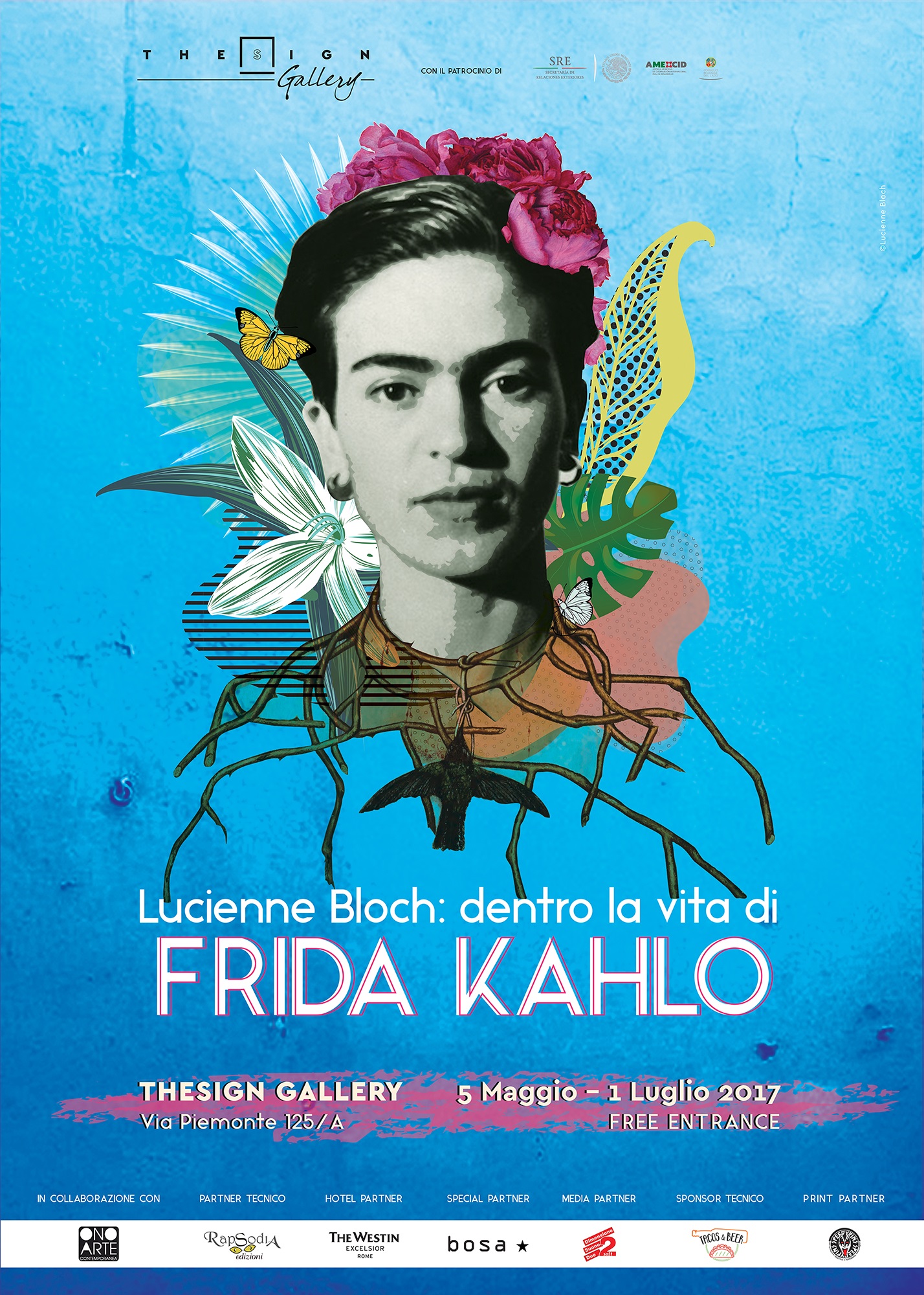 La mostra è realizzata in collaborazione con la galleria Ono Arte Contemporanea di Bologna, il The Westin Excelsior di Roma e la casa editrice Rapsodia Edizioni. Inoltre si fregia dell’Ambasciata del Messico e della Regione Lazio.