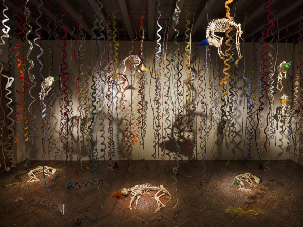 Durezza e fragilità. Tangibile e intangibile. Vita, metamorfosi, morte. Jan Fabre (Anversa, Belgio, 1958) torna a Venezia con un progetto inedito. Quarant’anni di lavoro riuniti in una mostra appositamente studiata e calibrata per gli incantevoli spazi dell’appartata abbazia di San Gregorio. Più di quaranta lavori realizzati tra il 1977 e il 2017, tutti rigorosamente in ossa e vetro (molti in vetro di Murano). Jan Fabre. Glass and Bone Sculptures 1977-2017 raccoglie le ultime decadi di produzione, per la prima volta insieme (fino al prossimo 26 novembre), posizionate dal centro gravitazionale dello scarabeo smeraldo in mezzo al chiostro fino ai teschi e agli spermatozoi che corrono nel piano superiore.