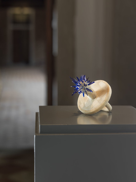 I due materiali protagonisti della mostra ad hoc per il suo ritorno a Venezia sono sempre stati centrali nella carriera di Jan Fabre. The Pacifier, ad esempio, è datato 1977 e rappresenta un ciucciotto realizzato in osso, ma avvolto da schegge di vetro che non può essere usato a meno che non ci si voglia ferire. Di vetro era anche l’altare primitivo di ossa umane di The Future Merciful Vagina and Phallus (2011) sulla cui sommità c’erano un osso pelvico e un fallo.