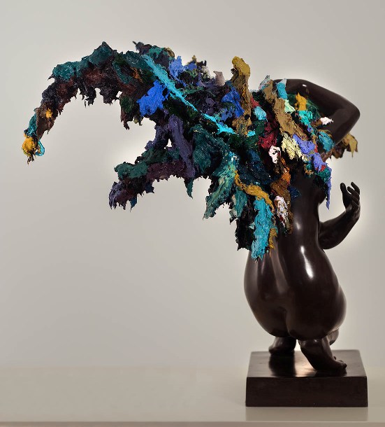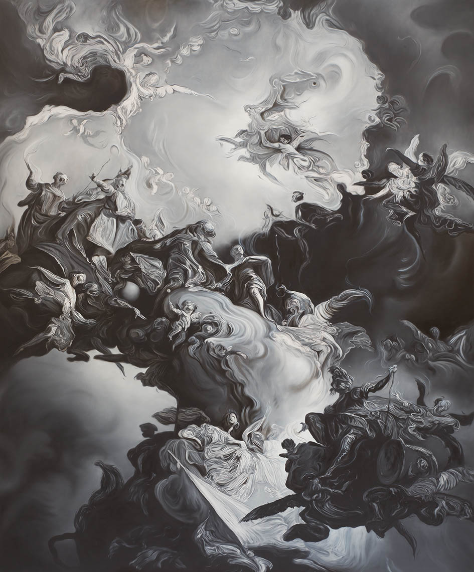 Le composizioni fondono tra loro diversi movimenti della storia dell’arte, quali il Rinascimento, l’Impressionismo e il Surrealismo, creando uno spazio dove astratto e viscerale, razionale e irrazionale, bello e grottesco si confondono e danno vita a un vertiginoso amalgama di forme e riferimenti.