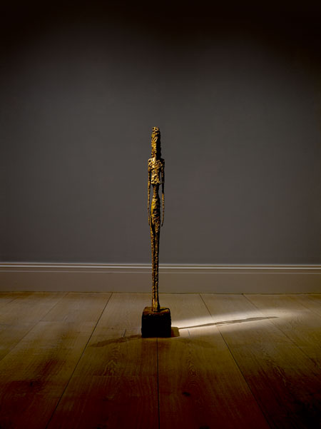 Si erge dal suolo con una divinità. Il bronzo di Alberto Giacometti “Grande Figure” sembra in contatto con le sculture antiche. Con loro ha in comune una grande dignità. La donna, immobile testimonianza della fragile condizione della natura umana, si eleva muta nella sua cruda forma.