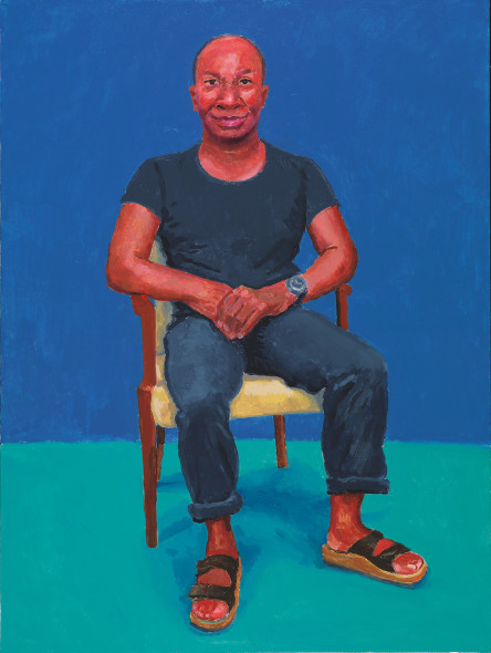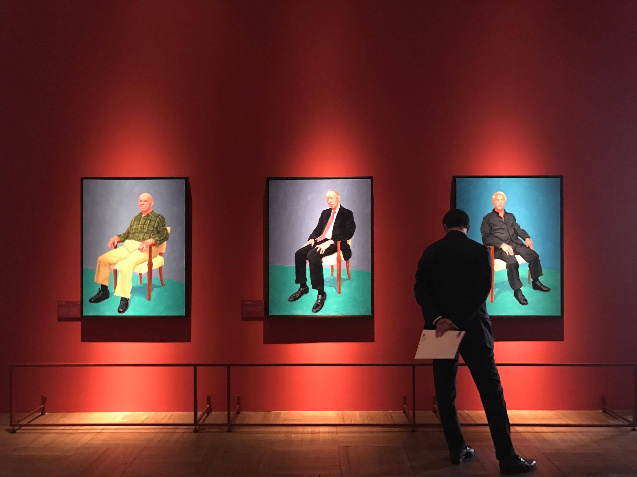 Oggetto di questa esposizione veneziana, organizzata dalla Royal Academy of Arts di Londra con la curatela di Edith Devaney, in collaborazione con Ca’ Pesaro, è un’opera corale composta da più di ottanta ritratti e una sola natura morta. “Una mostra che ho a lungo inseguito”, spiega in conferenza stampa Gabriella Belli. La direttrice della Fondazione Musei Civici di Venezia voleva portare Hockney a Venezia già anni fa, dopo l’esposizione del 2013 dedicata ai paesaggi dello Yorkshire allestita alla Royal Academy. Ma quell’anno, la morte improvvisa di uno degli assistenti di Hockney fa di lui un artista inafferrabile. David torna a vivere a Los Angeles ed è lì che riprende in mano tele e colori, dopo mesi di inattività. E lo fa ritraendo il suo braccio destro, J-P Gonçales de Lima, seduto su una sedia, la testa tra le mani, il dolore sommesso. Nel sentire accorato di quell’uomo, Hockney ritrova il suo sentire e quella tela, che l’artista definisce “quasi un autoritratto”, diventa il punto di partenza di un lavoro meticoloso e quotidiano che lo porterà a ritrarre 82 persone in due anni e mezzo.