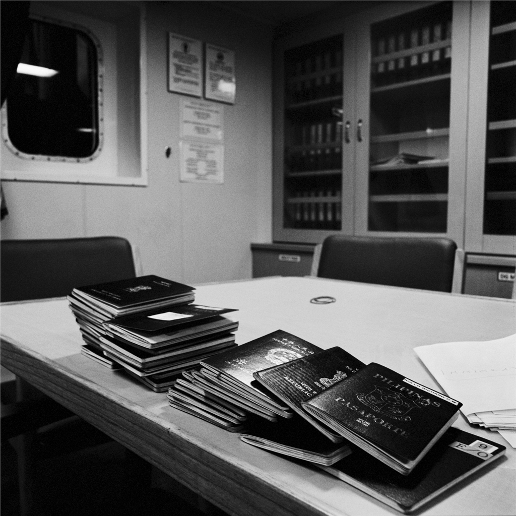 L’esposizione è il risultato di un lungo lavoro, un percorso fotografico durato oltre quattro anni che ha visto come oggetto d’indagine gli interni di numerose navi cargo, appartenenti a compagnie di nazionalità diverse. Massimiliano Camellini, partendo dalla sollecitazione letteraria di Novecento di Alessandro Baricco, ha restituito gli spazi del lavoro e del riposo di importanti navi cargo, piccole città stato che, per un lungo periodo dell’anno, galleggiano sull’oceano, lontane dalla terra ferma e dalle sue regole. Il progetto ha messo in evidenza – attraverso oggetti, simboli, piccoli feticci – il tentativo di ricostruire una quotidianità perduta, una stabilità all’interno di una piattaforma in continuo movimento. Ad essere inquadrati sono gli spazi e gli oggetti del comando, ma anche e soprattutto i luoghi privati, le cabine, i letti con a fianco comodini carichi di ricordi, tavole pronte per accogliere un nuovo pasto, corridoi a dividere il riposo dei temporanei abitanti.