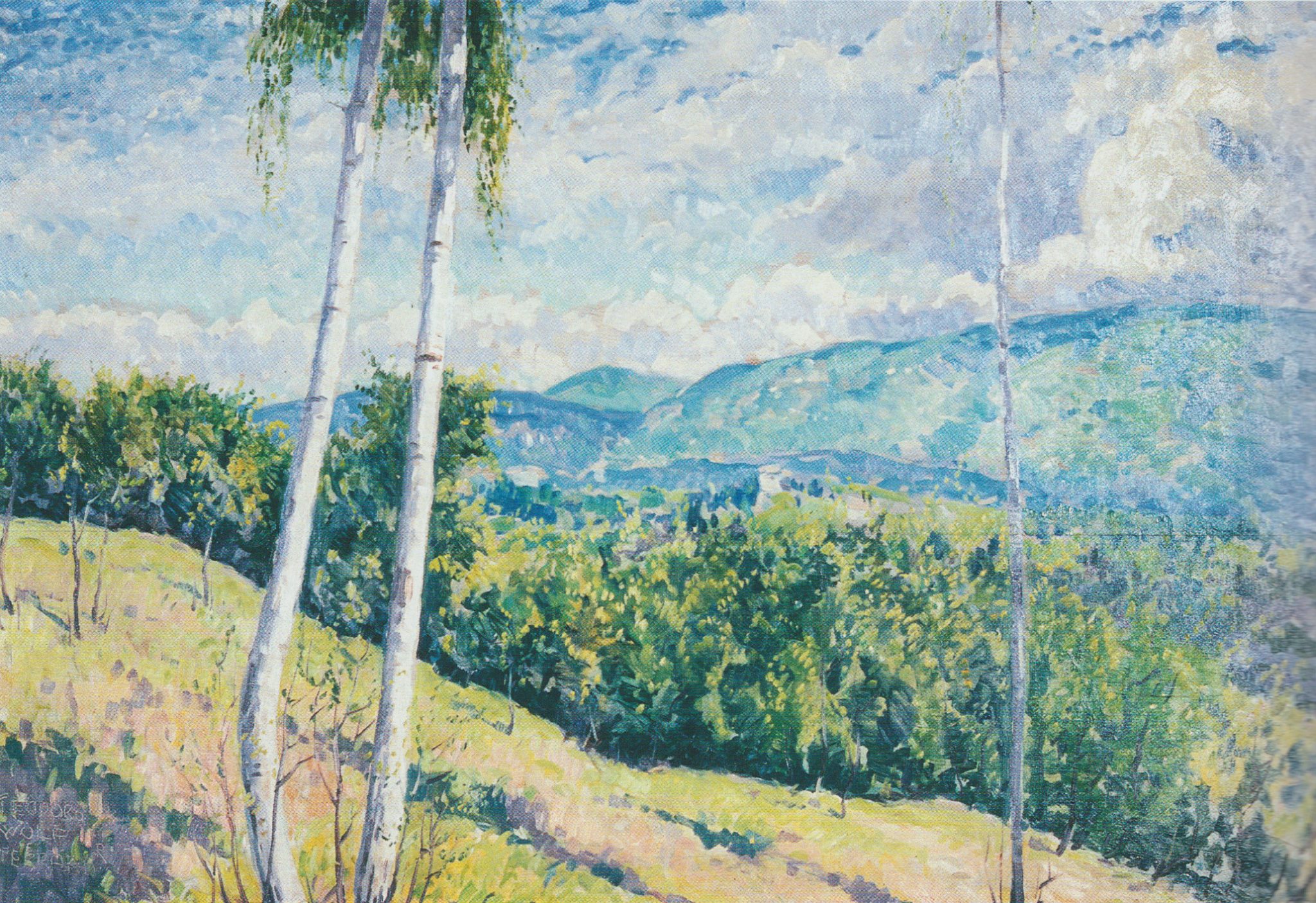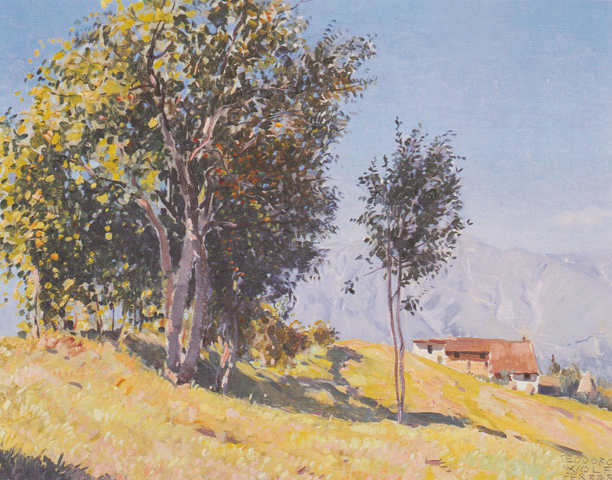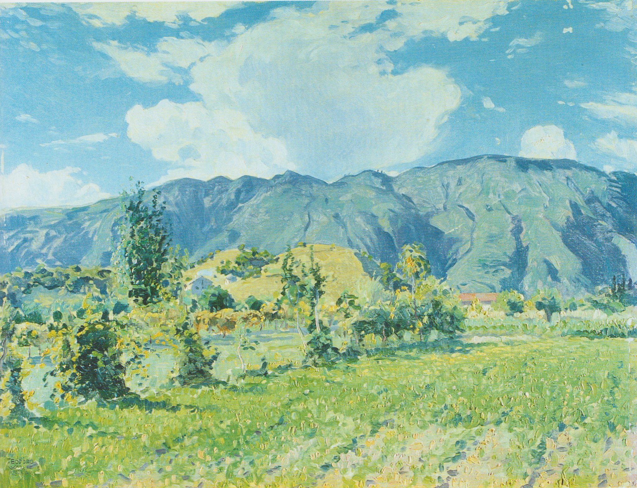 Fin da piccolo l’artista era solito trascorrere le vacanze nella cittadina trevigiana di San Zenone degli Ezzelini; il legame con questo paese diventò sempre più intenso, tanto che negli anni Venti egli vi si traferì stabilmente e qui restò fino alla morte. Teodoro Wolf Ferrari conosceva alla perfezione questa cittadina e ogni collina, monte, famiglia, casa gli erano familiari. L’artista si dedicò alla rappresentazione di queste terre a lui care e scelse il vicino monte Grappa come protagonista di molte composizioni. Egli come i pittori impressionisti era solito rappresentare isoggetti da molteplici angolazioni e con diverse condizioni atmosferiche, quasi a voler mostrare quanto uno stesso luogo variasse e fosse mutevole.Nelle sue opere grande importanza per la resa dei paesaggi è data ai colori; caldi come gli arancioni e i marroni o freddi nelle varie tonalità di verde, essi sono stesi ora con precisione e piccole pennellate di tocco, ora con pennellate sicure e veloci apparendo così corposi e grumosi. In ogni caso la rappresentazione è di grande effetto, in grado di rendere la natura e le sue variazioni.