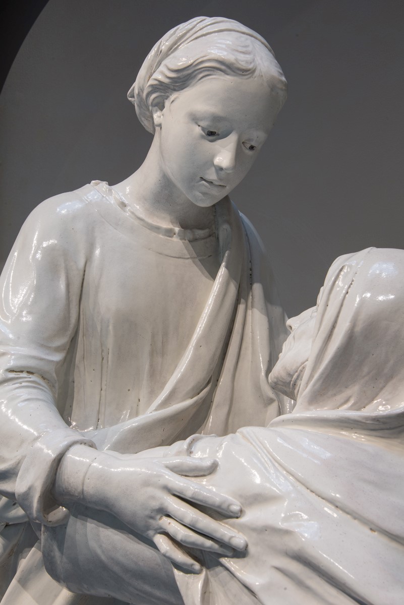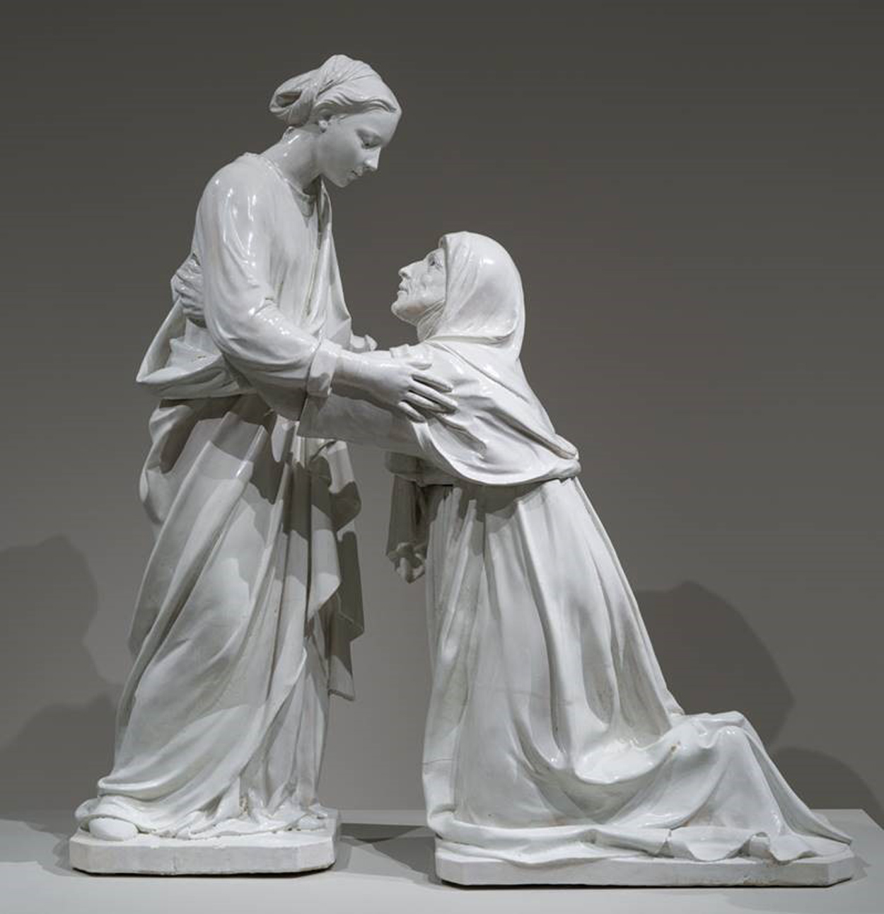 La Visitazione è una delle prime opere in terracotta invetriata, tecnica di cui della Robbia è considerato l’inventore. L’artista fiorentino per primo applicò alla scultura in terracotta una copertura in smalto stannifero che rendeva la superficie lucida e resistente, iniziando una produzione di grande successo. Il gruppo raffigura l’incontro tra Maria e la cugina Elisabetta, come è narrato nel Vangelo di Luca.