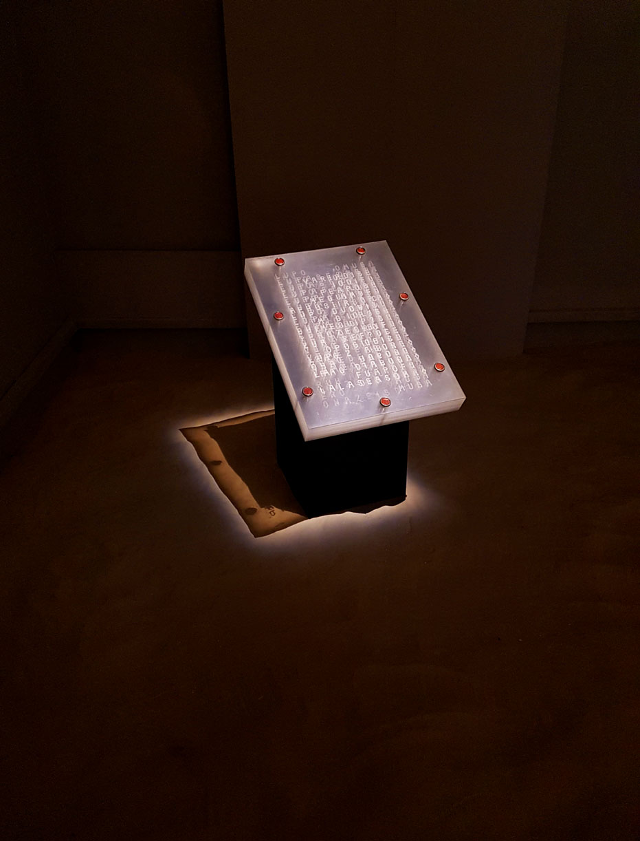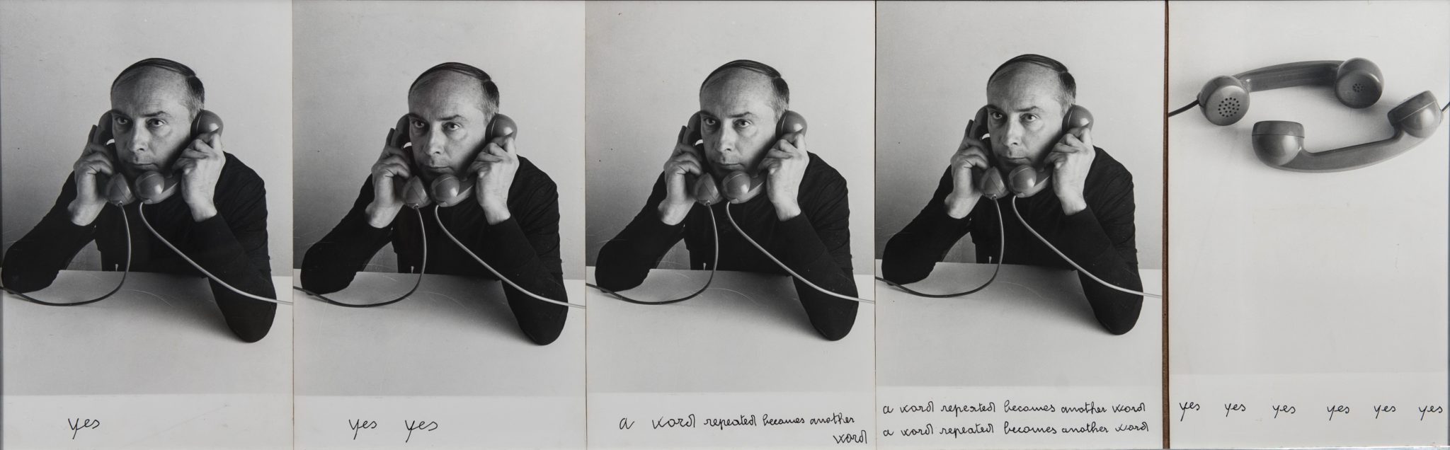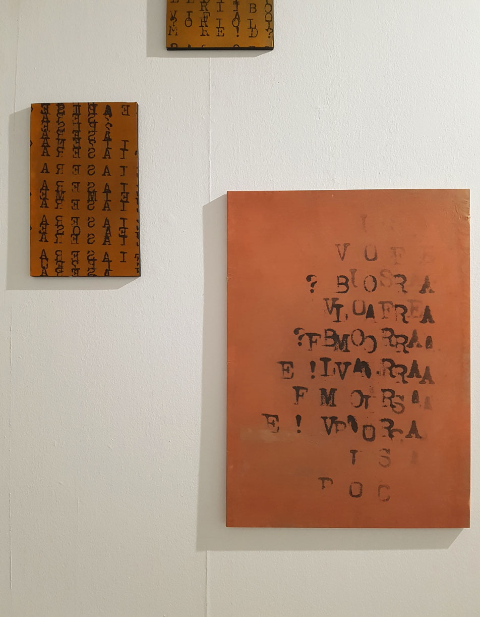 La parola è tutto e nella parola c’è tutto. I meccanismi di potere della parola, sia scritta che detta, vengono sconvolti e tradotti in immagini limpide ed evocative. Agnetti dà alla luce un sistema semantico nuovo. Dagli ingrandimenti fotografici su tela emulsionata -“creature” realizzate dalla Macchina drogata– all’Amleto politico: un’intera sala è dedicata a questa operazione di teatro statico in cui l’Amleto non è più l’uomo del dubbio, ma uno qualsiasi che arringa la folla con un monologo privo di significati. L’intonazione è ciò che conta davvero e con essa Agnetti dà linguaggio ai numeri.