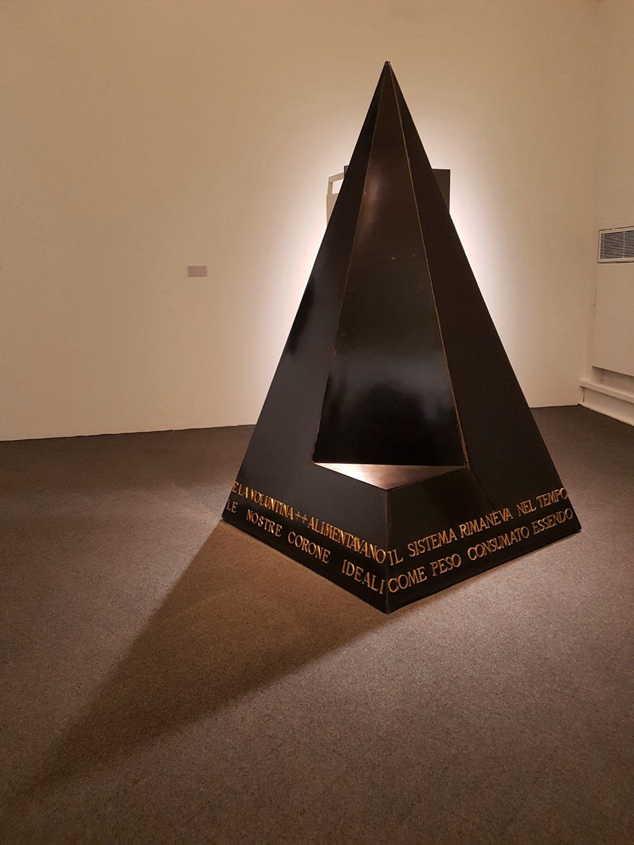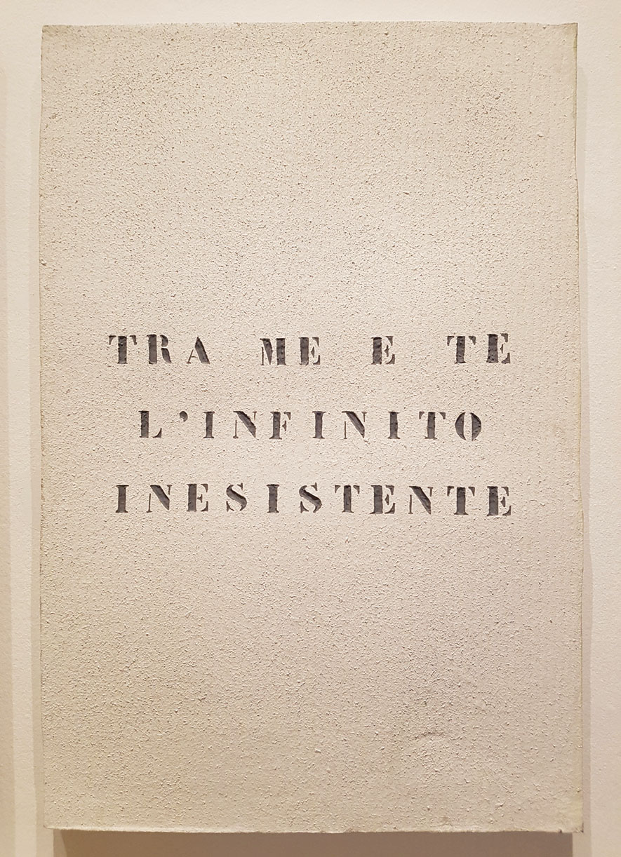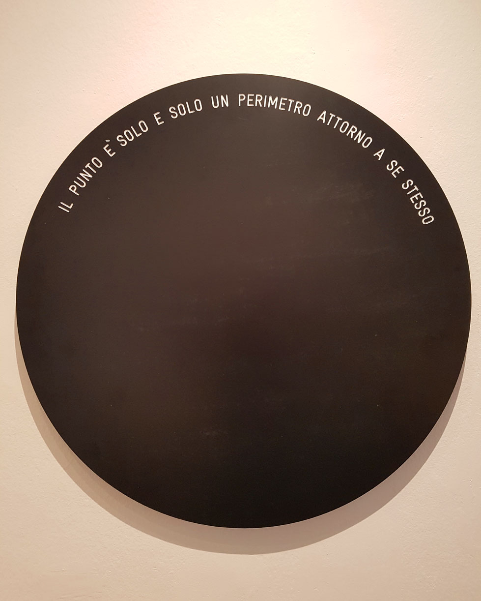 Intonazione, parola scritta e detta, punteggiatura. Da Autotelefonata a Tutta la Storia dell’Arte in questi tre lavori. Da Età media di A, fino a lavori meno noti come Architettura tradotta per tutti i popoli e Riserva di caccia. Importante infine il sodalizio con alcuni grandi artisti per i quali Agnetti ha scritto e con i quali ha collaborato: Manzoni, Castellani, Melotti, Claudio Parmiggiani, Gianni Colombo e Paolo Scheggi. Con quest’ultimo Agnetti ha firmato il Trono, lavoro esposto proprio a Palazzo Reale per la prima volta dopo quasi cinquant’anni dalla sua prima esposizione a Roma. Quella di Agnetti fu una breve parabola artistica -muore improvvisamente a soli 54 anni- ma così intensa da rendere difficoltoso l’orientarsi tra le sue produzioni. Proprio per questo la mostra non segue un filo cronologico, ma privilegia il sentiero del discorso artistico. Oscilla tra associazioni e salti temporali tra periodi diversi allo scopo di accompagnare il visitatore tra le sfaccettature interiori del processo creativo dell’artista. La mostra A cent’anni da adesso ci dà la possibilità di scoprire e indagare la poliedrica e originale complessità del lavoro di Vincenzo Agnetti e -come avrebbe voluto proprio l’artista- “di continuare a vedere la mostra con gli occhi della mente, anche dopo essere usciti dalla galleria”, in questo caso, da Palazzo Reale.