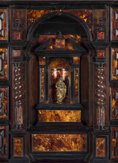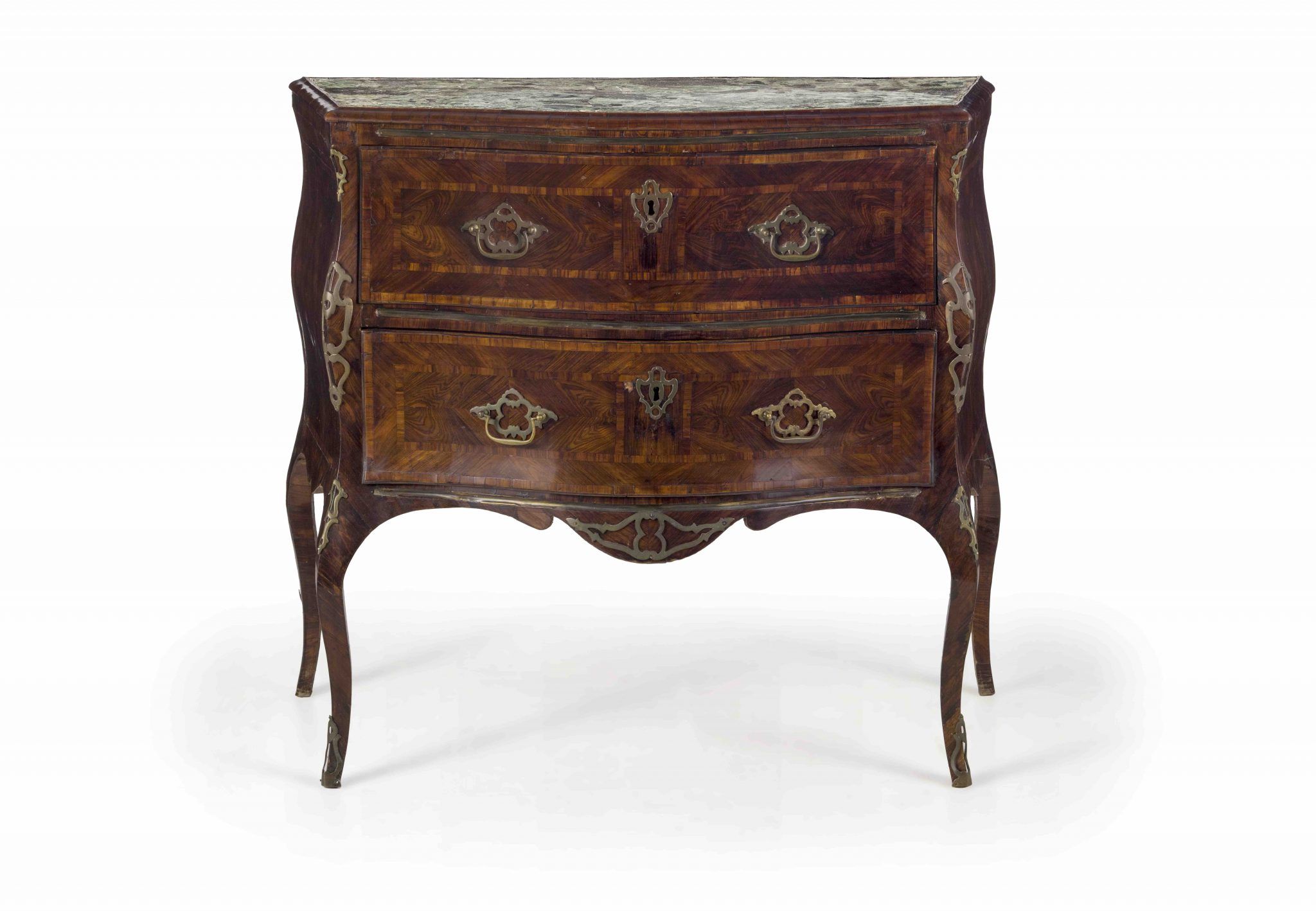 Si segnalano gli arredi decorati in tartaruga, come la grande vetrina del XVIII secolo con interni decorati a fondo oro stimata 8.000 – 12.000 euro, il “cabinet” su tavolo, incorniciato in ebano e realizzato tra il XVIII e il XIX secolo quotato 4.000 – 6.000 euro, o ancora, la bella coppia di cassettoni impiallacciati in ebano viola, elegantemente mossi ed impreziositi dai piani in marmo incassato valutati 15.000 – 25.000 euro.