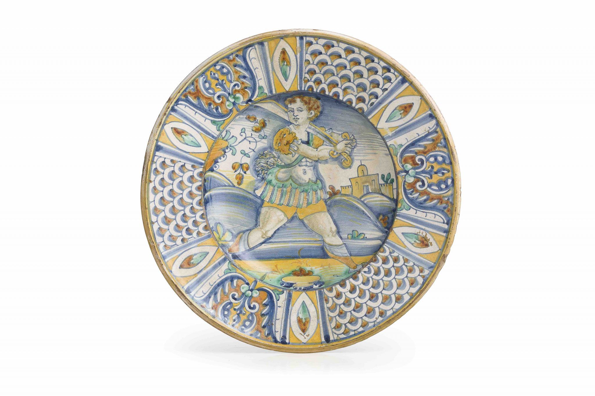 Infine, una variegata selezione di maioliche dell’Italia meridionale, e specialmente siciliane, provenienti dalle fornaci di Burgio, Caltagirone, Palermo, Sciacca e Trapani tra il XVI e il XIX secolo, tra cui l’importante cilindrone in maiolica policroma trapanese del XVIII secolo, decorato con l’arma araldica, forse degli Adamo quotato 1.200 – 1.600 euro. Ma anche qui un segno di quel gusto collezionistico avvertito del quale si è detto: tra tante cose siciliane, un piatto da parata in maiolica, decorato a figura intera e realizzato a Deruta nel terzo quarto del Cinquecento nella bottega del noto Giacomo Mancini, “El Frate”, una scelta basata sulla qualità, da qualunque parte provenga stimato 3.000 – 4.000 euro.
