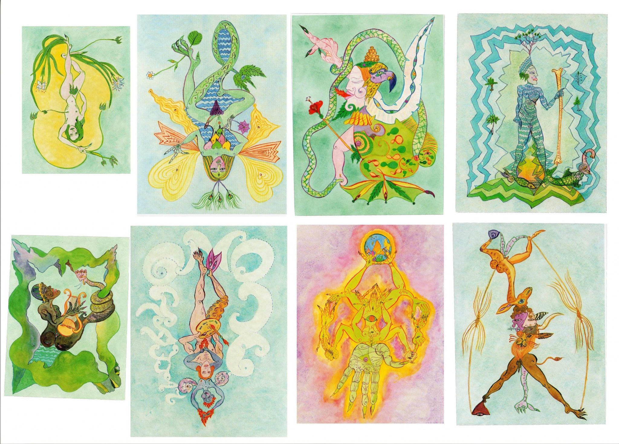 Un sessantina di opere distribuite lungo un percorso che si snoda tra le stanze del pianterreno, la rampa elicoidale borrominiana e le sale della Galleria Accademica al terzo piano, in un surreale dialogo con l’architettura ospitante e con i quadri della raccolta permanente. E che testimoniano di una ingegnosa, ricca e vitale sperimentazione estetica: dalla fotografia (a colori, lenticolare, dipinta), agli oli, agli acquerelli, alle ceramiche policrome (maschere, erme, busti, canopi), al mosaico. Cui fa eco una singolare arte del neologismo: ErmEstEtica, BellimBusTO, Ombrofago, AnamorPose, CiniComico. Sono solo alcuni dei bizzarri titoli che apprendiamo, divertiti, dalle didascalie.
