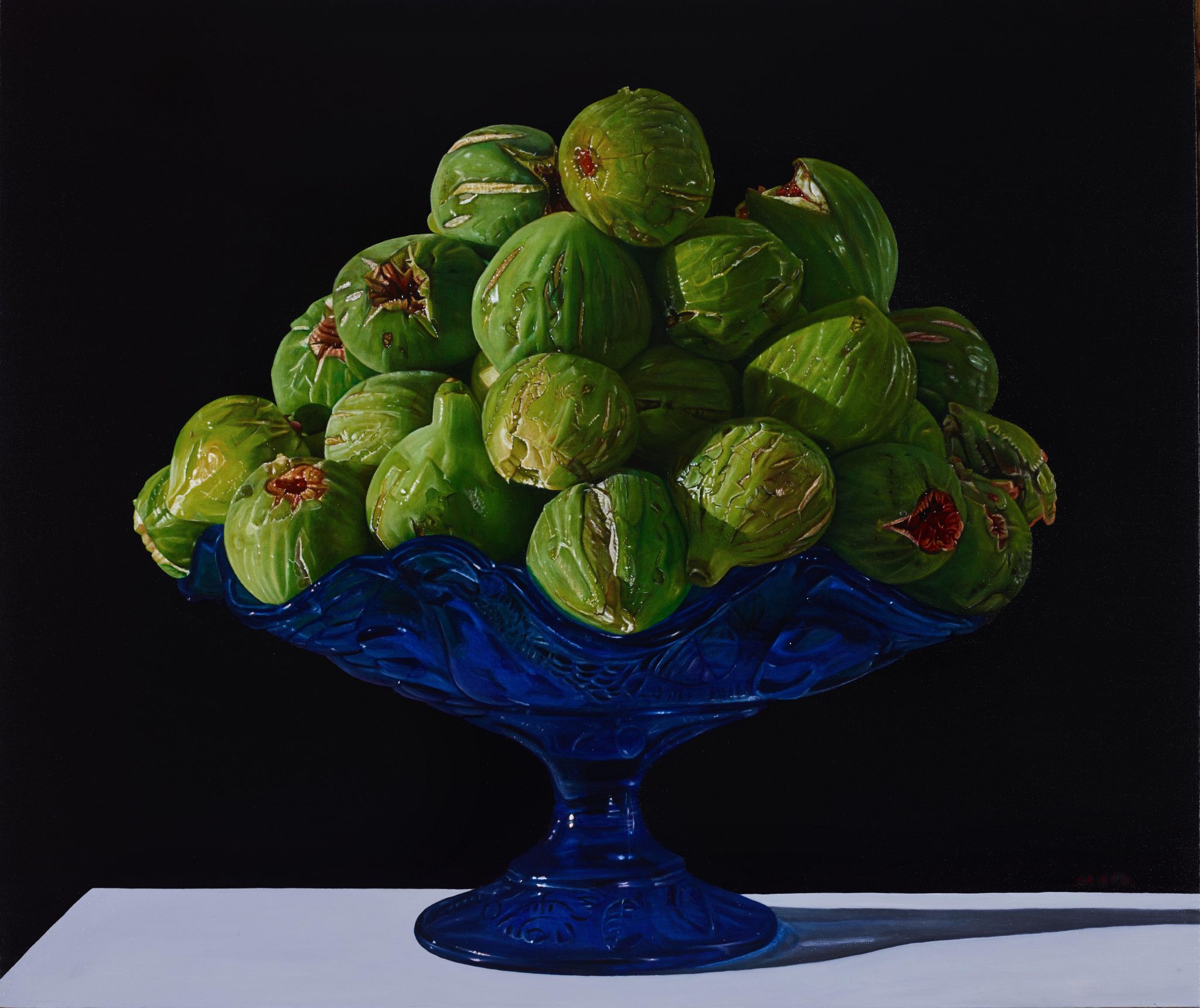 Non poteva dunque che celebrarsi nella cornice di Eataly Roma – tempio dell’eccellenza della gastronomia italiana – la personale di Giuseppe Carta “Germinazioni. I diari della Terra” – dopo il successo riscosso lo scorso anno nello store di Milano. A sottolineare questo imprescindibile legame è stata organizzata una conferenza stampa a dir poco originale : un mini corso di cucina per i giornalisti con la presenza dell’artista che, attraverso circa trenta opere tra sculture policrome in bronzo e oli su tela di piccole e medie dimensioni, racconta il rapporto tra cibo, arte e natura. L’esposizione si pone dunque come occasione per esplorare le potenzialità comunicative dei frutti della terra così come quelle evocative dei piani di legno rugoso, dei calici di cristallo o delle ceste di vimini che nelle tele esposte sembrano raccontare storie d’altri tempi. Tuttavia, il primo approccio visivo rassicurante e familiare dei soggetti proposti quasi contrasta con le atmosfere metafisiche dei colori vivaci dove il taglio netto della luce sul fondo scuro anima la composizione e invita alla meditazione. I nostri stanchi occhi contemporanei abituati a “fagocitare” una impressionante quantità di immagini a velocità quasi siderali, nell’impatto con le tavole metafisiche di Carta, non possono che fermarsi a contemplare quelle composizioni su più piani di lettura. Spesso i frutti della terra non sono rappresentati nel massimo splendore ma in vari periodi che suggeriscono significative riflessioni sulla bellezza imperfetta della vita. O perfezione relativa. La bellezza di una buccia raggrinzita che racchiude un dolce ripieno o di una cipolla con le germinazioni che non può più troneggiare in cucina ma può donare nuova preziosa vita. Ricordi e sensazioni , raccolti e racconti di un rapporto privilegiato con la natura come quello con il suo giardino con frutteto dal quale ricava i suoi soggetti.