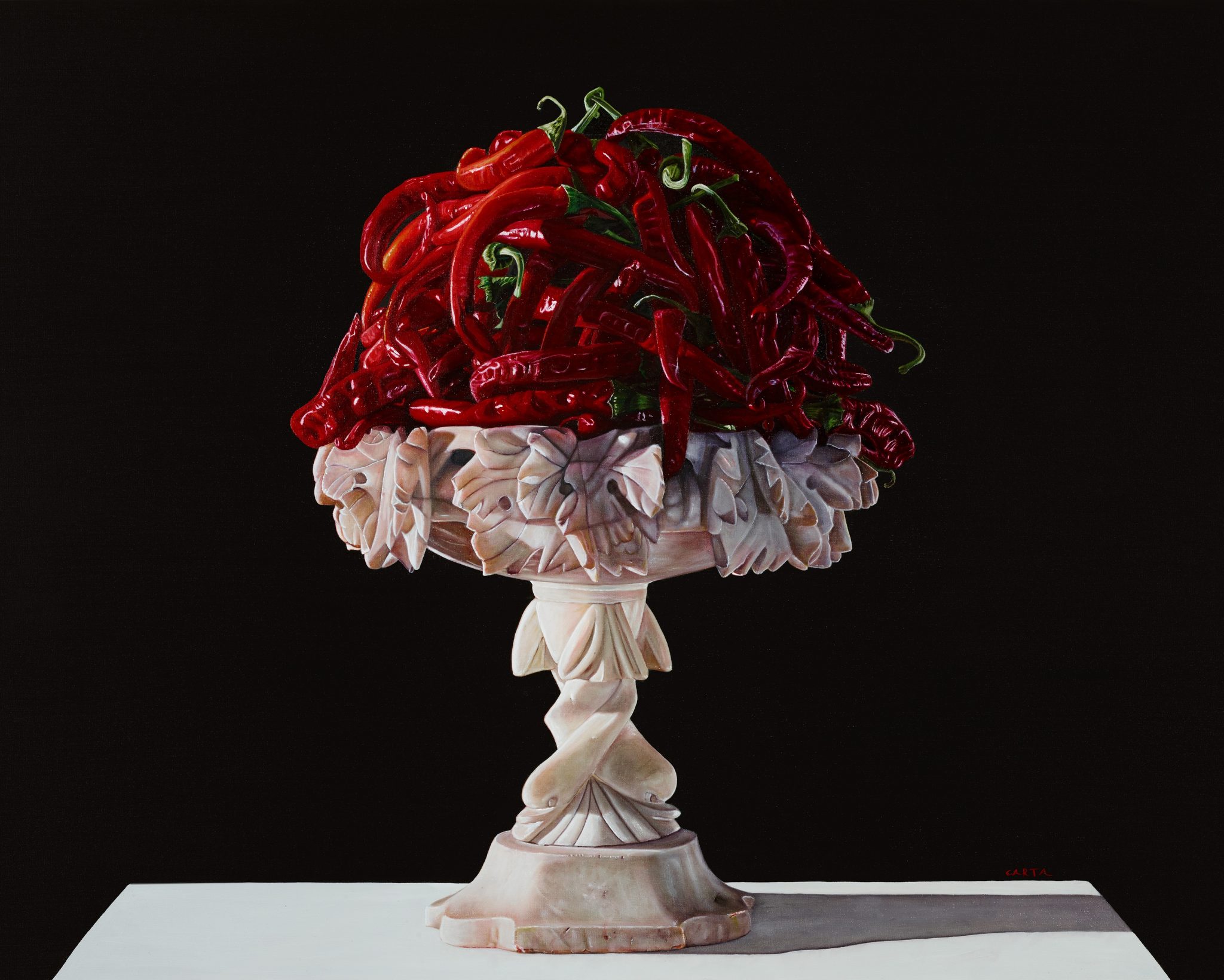 In tutte le sue opere , Carta riproduce con abile precisione lenticolare i suoi soggetti e per questo motivo è stato classificato spesso come un artista iperrealista. In realtà, la tecnica che amplifica la realtà è un modo per ricreare fedelmente la sua intima visione interiore . Non c’è artificio o una meccanica visione fotografica, non c’è alcun distacco dalla realtà o annullamento della soggettività espressiva dell’artista come avveniva per i primi iperrealisti americani. Il suo percorso creativo è intimo e personale. Anche l’uso del fondale scuro, che in questo caso ci ricorda le composizioni di Caravaggio e del Maestro di Hartford, permette agli oggetti di animarsi per mezzo della sintesi operata dalla luce, mostrandosi non solo all’occhio ma anche alla coscienza dell’osservatore.
