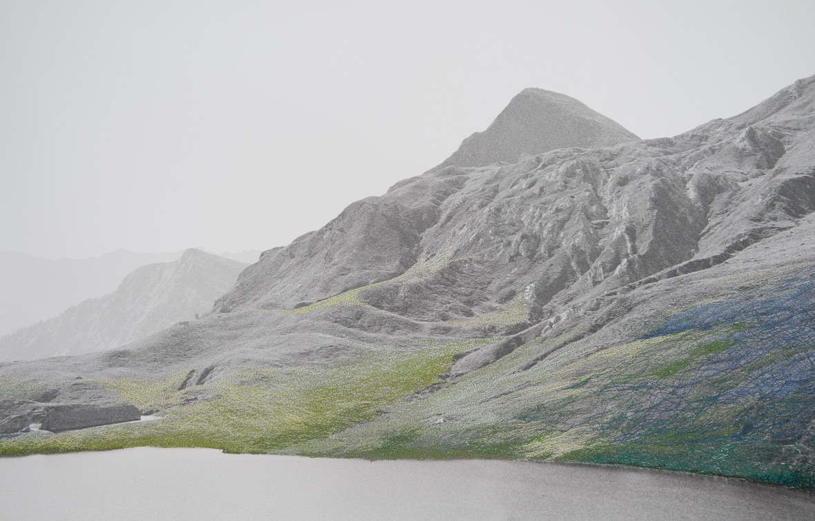 Il tema del paesaggio è affrontato con un linguaggio non convenzionale e descrittivo. Ciascun autore opera con idee e modalità differenti alla progettazione dell’immagine pur mantenendo la scelta del procedimento fotografico come base specifica o prevalente nella sua scrittura. Paolo Barbaro usa le stanze di un edificio abbandonato come camera ottica. Sui muri degli ambienti destinati alla demolizione si proietta il paesaggio circostante. Un dialogo tra memoria urbana e natura. Luca Gilli presenta una serie di paesaggi dell’Islanda in cui la forza della natura viene riletta in una dimensione trascendente e metafisica. Nancy Goldring giunge all’immagine finale attraverso un’elaborazione molto articolata. L’artista americana parte dall’analisi di un luogo, il paese medioevale di Sarteano in Toscana, attraverso disegni e fotografie che successivamente sovrappone in multiproiezioni simultanee. Iris Hutegger nelle sue fotografie analogiche esplora i rapporti tra percezione e memoria e tra realtà e illusione, intervenendo sui paesaggi montani stampati in bianco e nero con cuciture colorate, mettendo costantemente in discussione la nostra visione e il nostro rapporto col paesaggio. Hervé Jézéquel, si pone come osservatore delle diverse scale di grandezza del paesaggio. Siano grandi spazi o dettagli, una mappa piegata o i particolari di un’onda, il suo sguardo osserva, sceglie, documenta. Christian Lebrat realizza direttamente in macchina fotografica i suoi « Rubans photographiques », risultato di una sequenza di scatti di paesaggi, per lo più urbani, che si accavallano e compongono una sola immagine di nastro orizzontale.