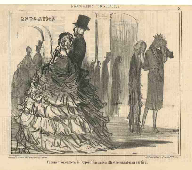 - DAUMIER E LO SVILUPPO DELLA SOCIETÀ MODERNA riguarda scene di trasporti pubblici, passeggiate sugli Champs-Elysées, ma anche scampagnate o vacanze al mare. In questa sezione rientrano anche i lavori intitolati Croquisparisiens, che documentano la vita quotidiana dei parigini, senza dimenticare gli emarginati creati dalla nuova realtà sociale delle città industriali, come gli inquilini delle cantine o dei sottotetti ed i vagabondi.
