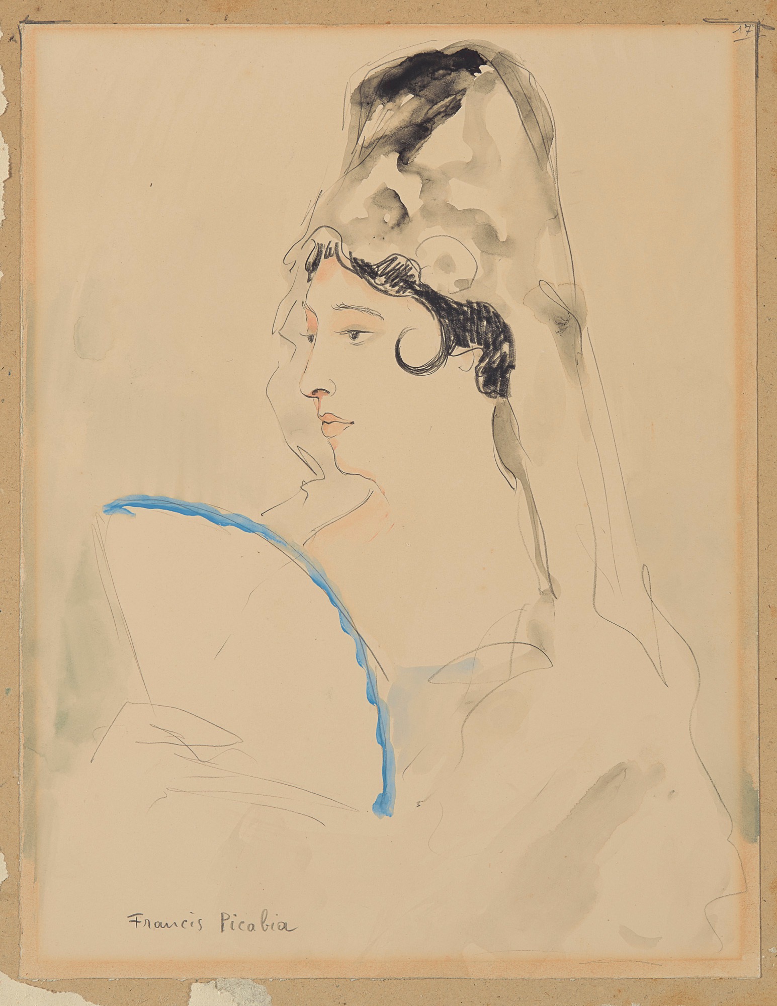 Espagnole à l’éventail bordé de bleu, 1926-27 circa