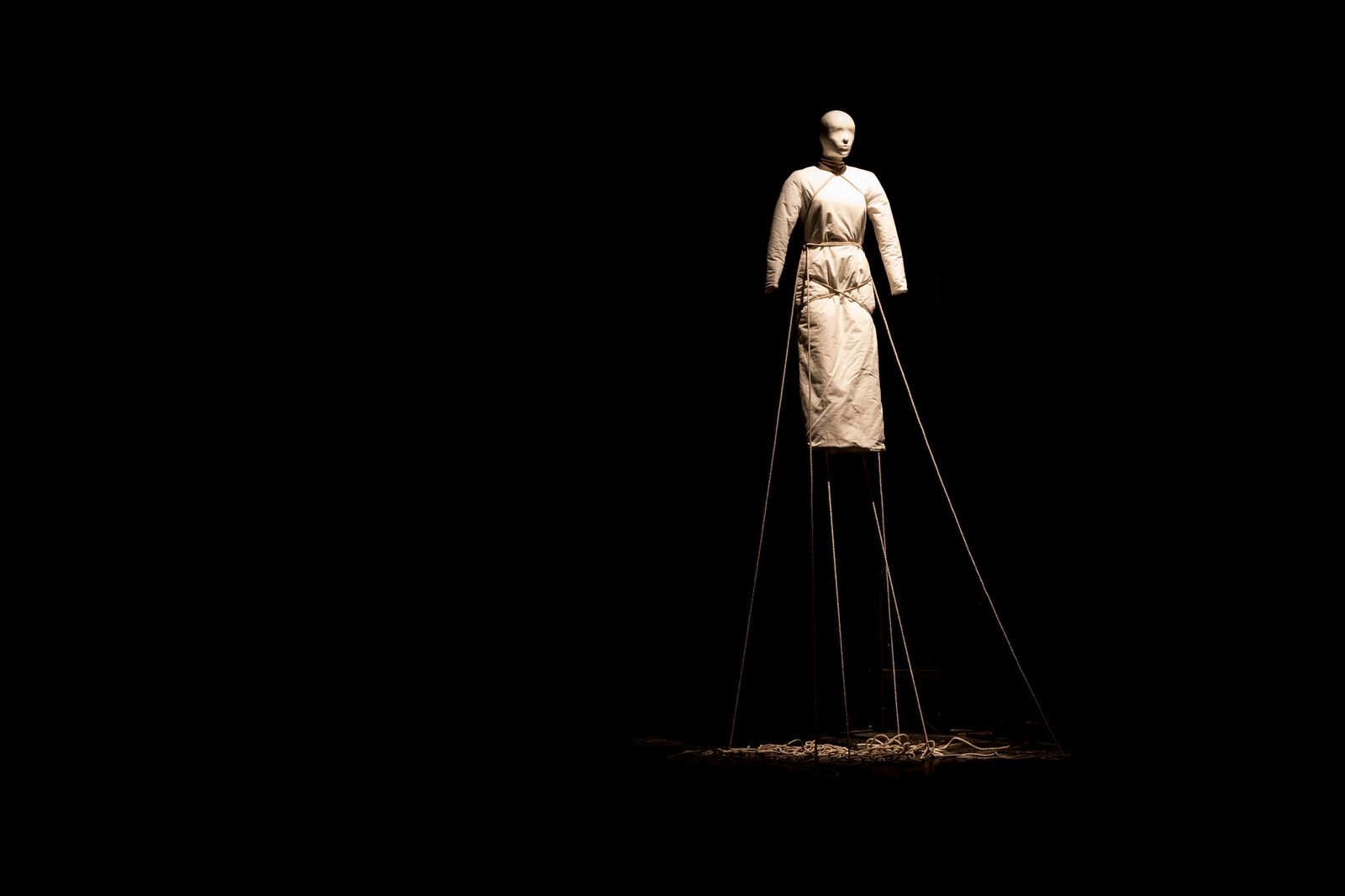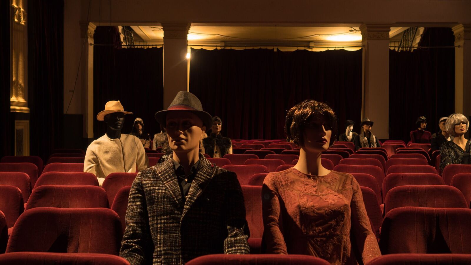 L’ossessione ricorrente di Nina Carini per la maschera sovverte la tradizionale gerarchia attore-pubblico, invadendo lo spazio durante la proiezione e posizionando manichini sul palco, tra le poltrone, per un effetto di straniamento.