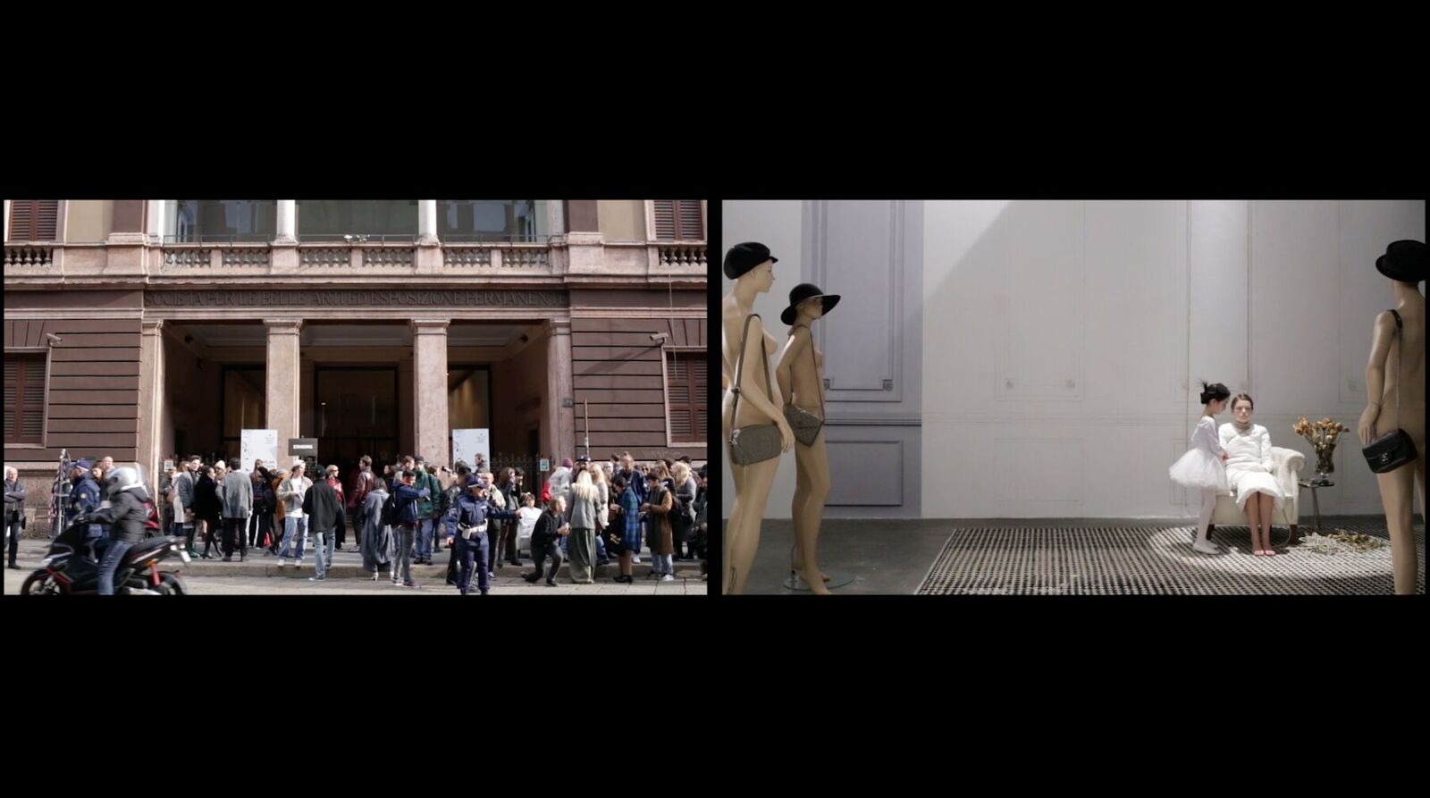 Nella seconda parte del lavoro, svoltasi al Teatro Verdi dal 14 al 17 settembre, una doppia proiezione ha mostrato su un lato, le riprese dell’azione pubblica, e sull’altro un set in cui, immerso in un’atmosfera bianca e onirica, un manichino, alter ego dell’artista, è mosso alla cieca da una bambina.