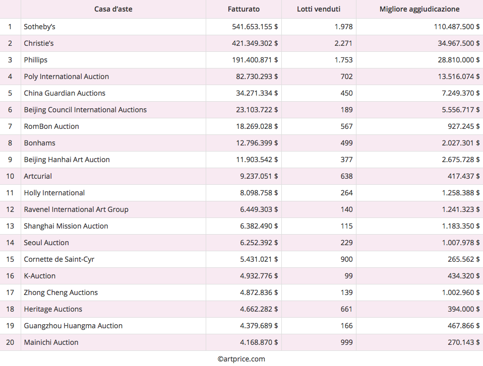 Clicca qui per sfogliare tutta la classifica: it.artprice.com