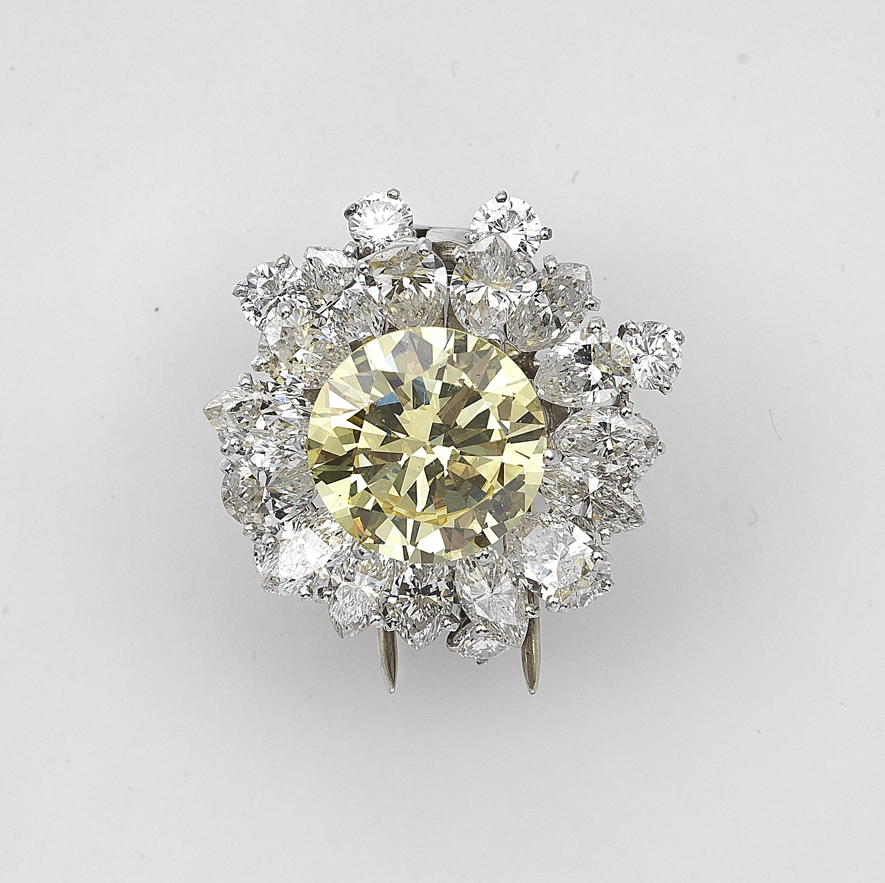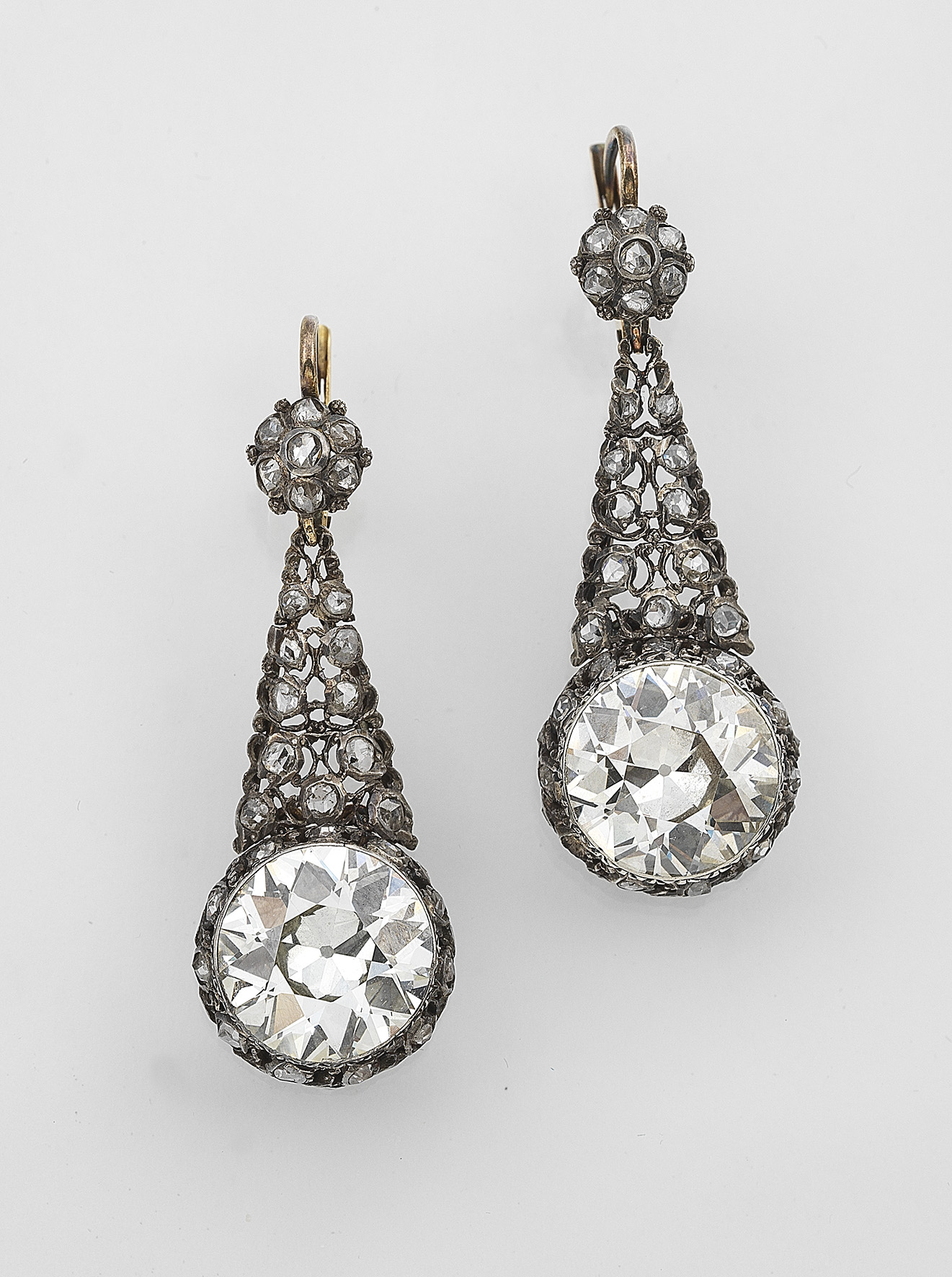 Un altro punto focale dell’asta sono i diamanti di alta caratura e qualità, come un anello con un diamante a taglio smeraldo di 6,21 carati valutato da 130.000 a 190.000 Euro, un diamante Fancy Intense Yellow di 4,66 ct montato con diversi diamanti di ca. 4 carati totali su una clip e valutato dagli esperti di Dorotheum da 50.000 a 80.000 Euro. Eccezionali anche un paio di orecchini pendenti a clip con 16 carati totali di diamanti a tagli differenti (€ 130.000 – 200.000).