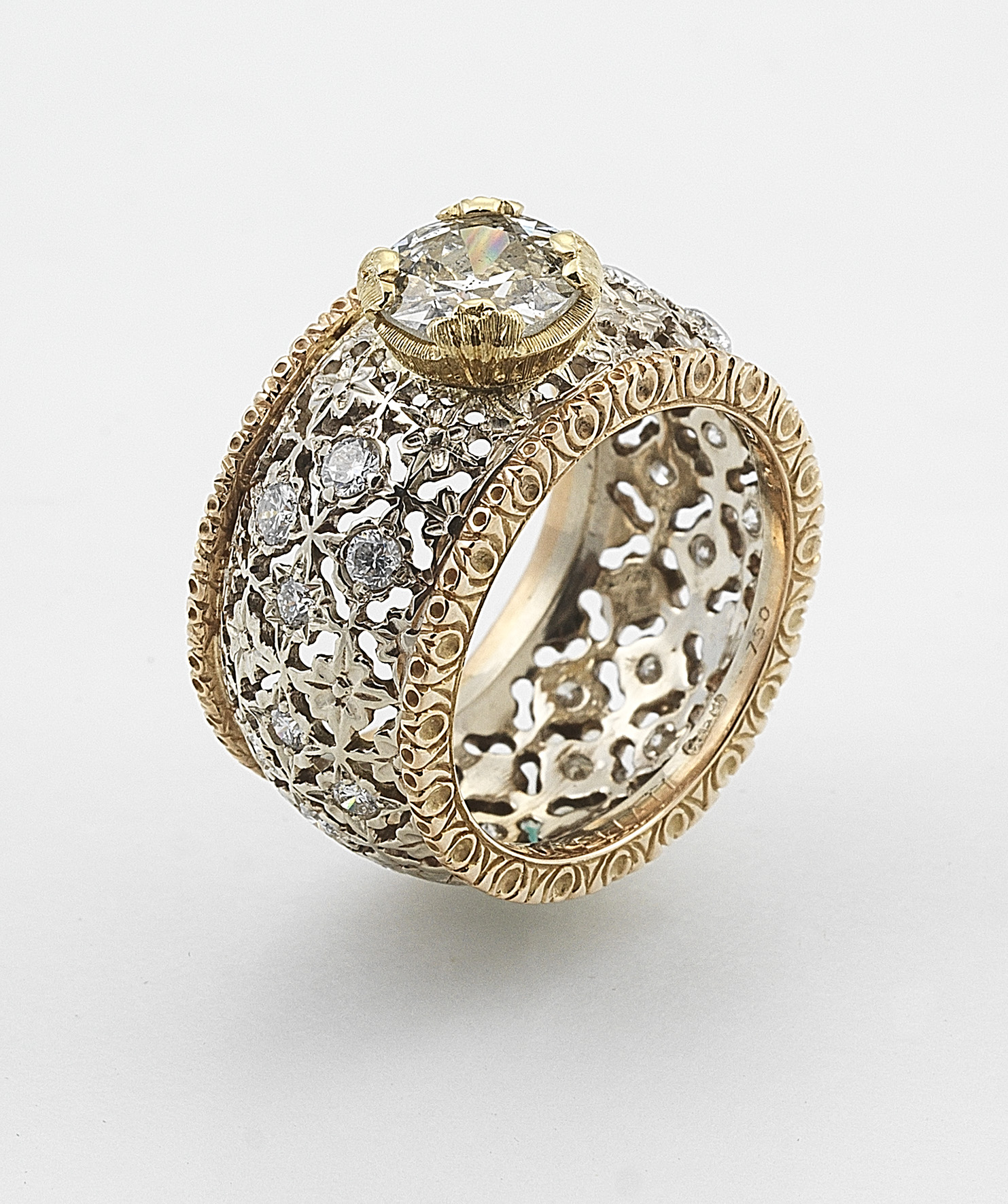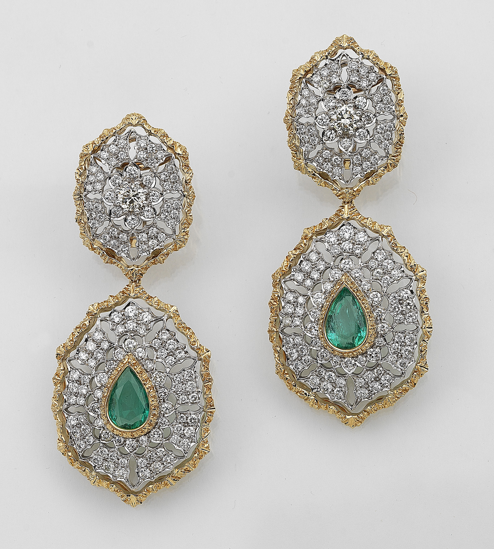 Il prossimo 19 ottobre numerosi pezzi con alte carature di questa storica maison, molti dei quali provenienti da famiglie aristocratiche, saranno in asta da Dorotheum a Vienna. Diamanti e pietre preziose, che ricordano il tulle o raffinati damaschi, sono i segni distintivi del grande gioielliere italiano. Ad esempio: un paio di orecchini pendenti con brillanti (ca. 6 ct) e smeraldi (ca. 3.30 ct) sono valutati da 16.000 a 20.000 Euro, mentre un raffinato anello ha una stima da 7.000 a 10.000 Euro. Sarà proposta in asta una parure di Buccellati degli anni ‘20/’30, costituita da orecchini e anello in diamanti di 14,70 carati, stimata da 90.000 a 150.000 Euro; interessante anche un bracciale dello stesso periodo con 17 carati di diamanti (€ 14.000 – 20.000).