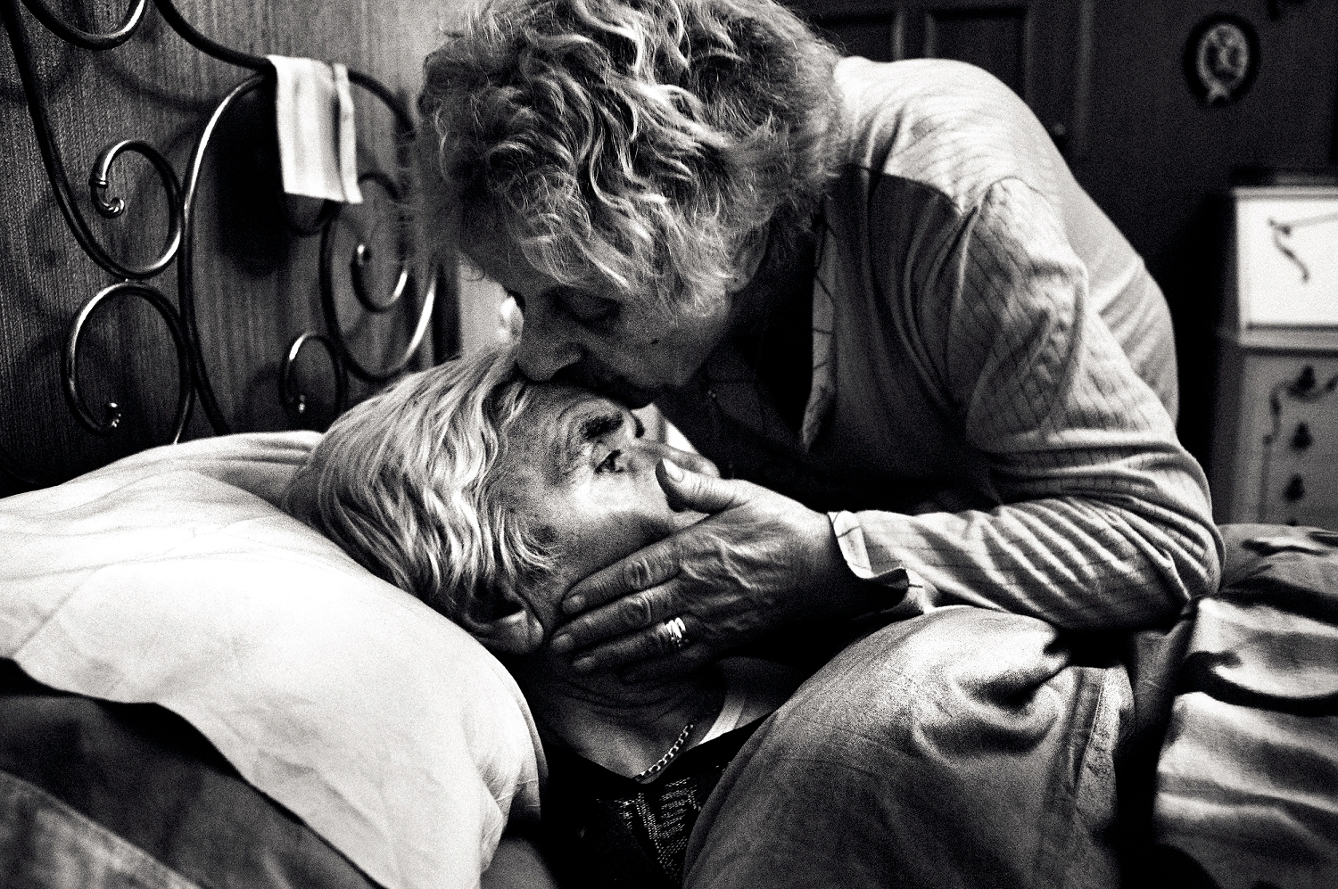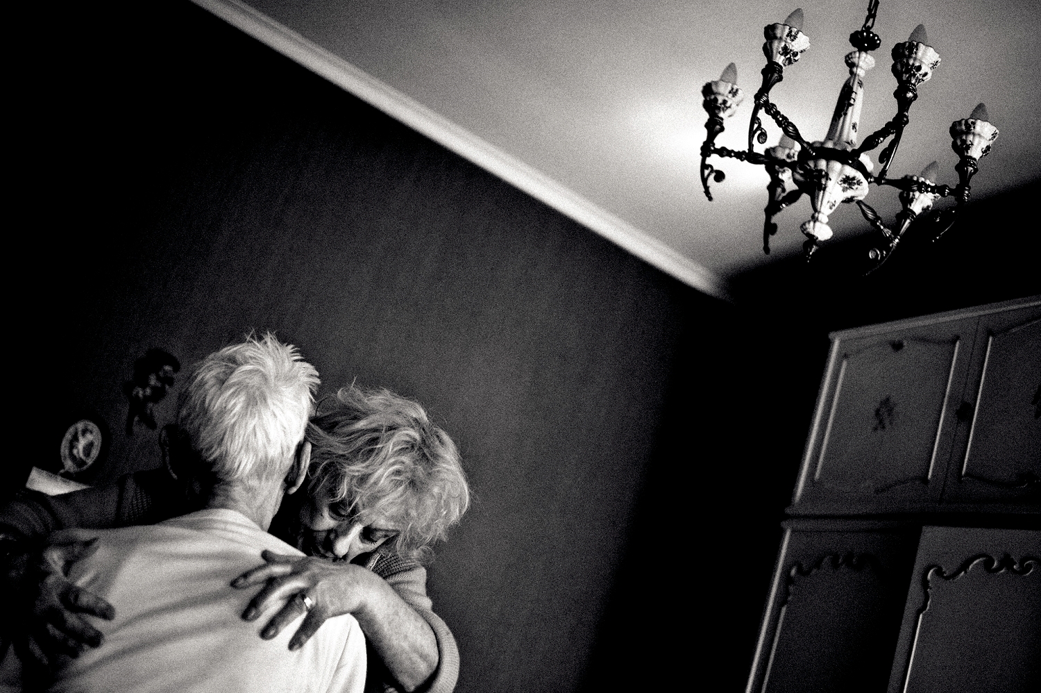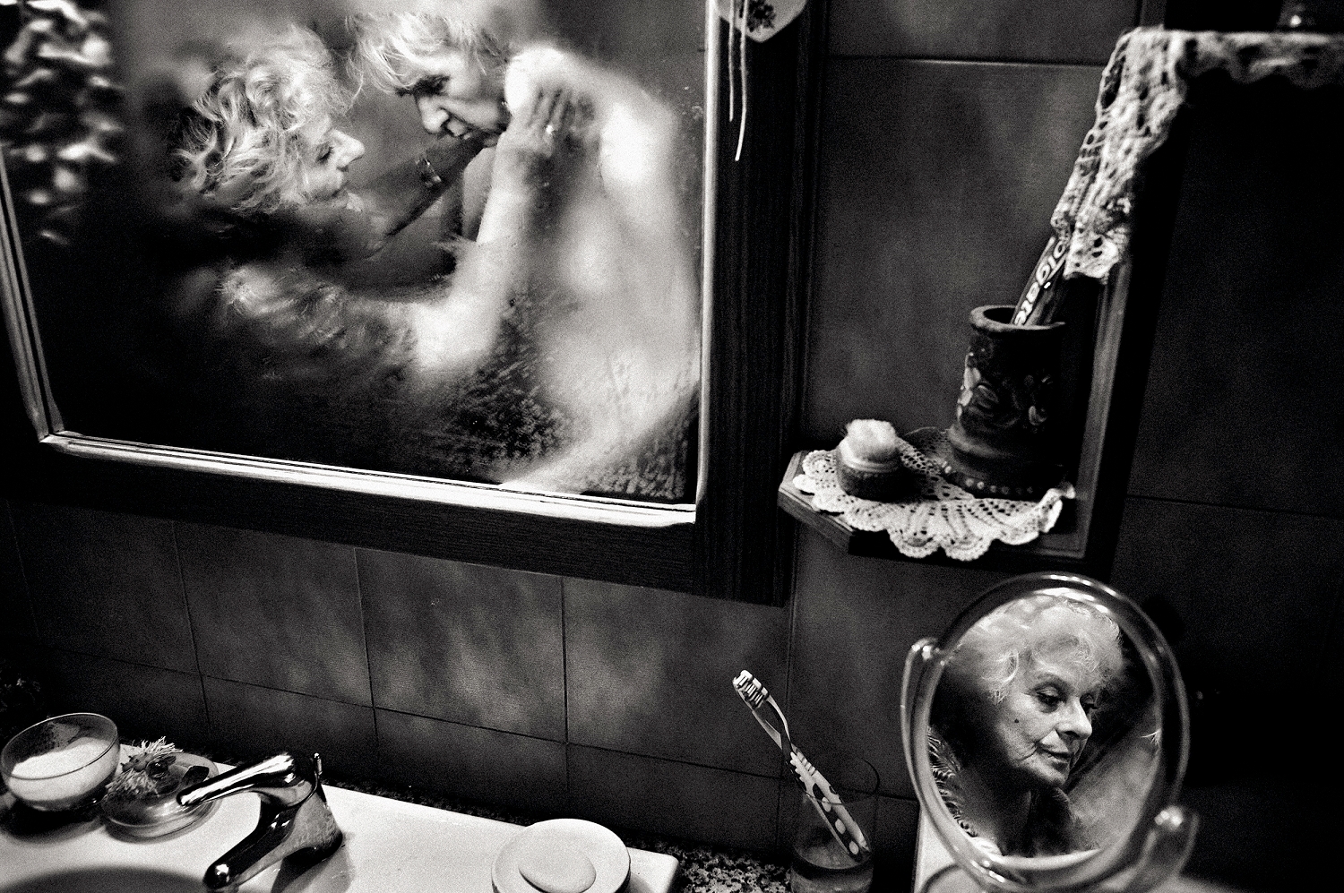 La malattia si intreccia con l’amore: è infatti la moglie, Mirella, che ci racconta la storia, permettendo al fotografo di fare dell’obiettivo fotografico il suo stesso occhio. Non una narrazione sulla malattia quindi, ma una storia di quotidianità e di assistenza continua, che permette di cogliere sfumature intime che vanno dal dolore all’estrema speranza.
