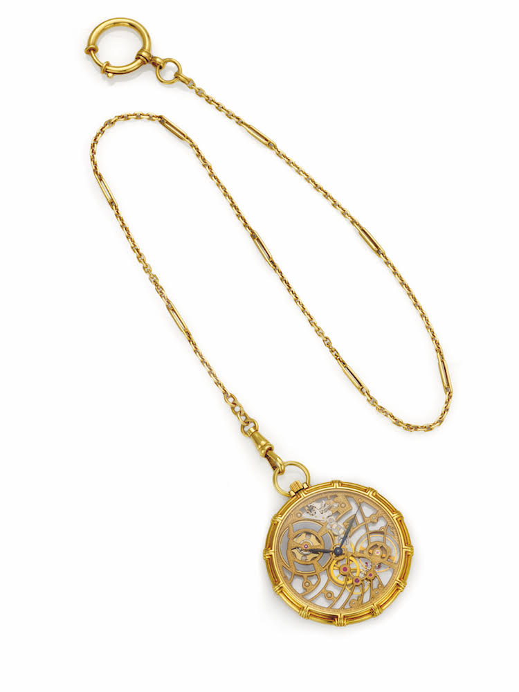 Non solo gioielli ma anche gemelli firmati Villa, Sabbadini e Faraone ed una selezione di orologi di iconici firmati Patek Philippe, Rolex, Breguet, Vacheron Constantin; ed un raro orologio Audemar Piguet “squelette” da tasca degli anni 70 il cui movimento è racchiuso da due vetri zaffiro.