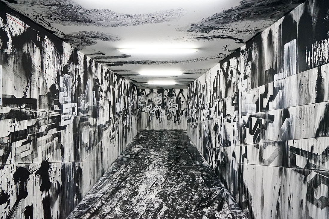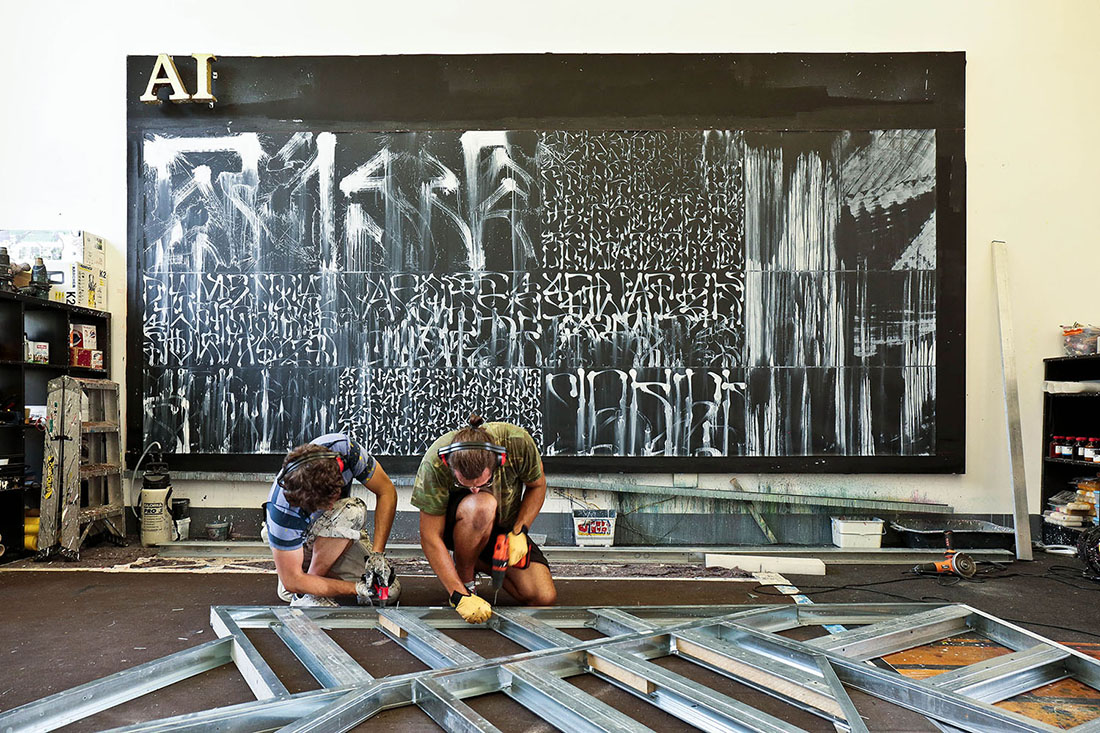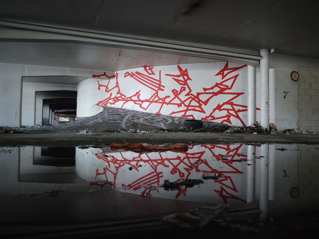 L’arte di Lek & Sowat nasce per strada, passa attraverso i luoghi abbandonati della città, scopre spazi nascosti e osserva le orme della storia. I frammenti si ricompongono in una sintesi fatta di segni che dà un nuovo volto ad un presente urbano, in continuo dialogo con il passato. Un’evoluzione artistica, una trasformazione fluttuante che mette a sistema tradizione e innovazione. I due artisti modificano il muro in tela e la parola in materia per appropriarsi nuovamente degli interni e degli esterni della città.