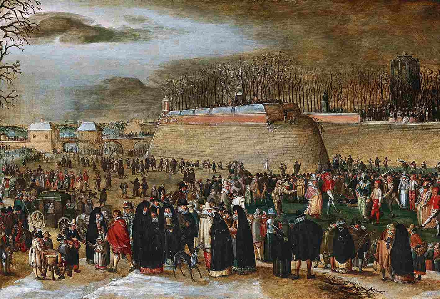 Porta ancora più verso nord il dipinto attribuito a Sebastian Vrancx “Paesaggio invernale con scena di carnevale vicino al bastione Kipdorpport ad Anversa” offre allo spettatore uno scorcio dei particolari festeggiamenti che si svolgevano nell’Europa del XVII secolo. Un gruppo della Commedia dell’arte si esibisce su un lago ghiacciato attirando l’attenzione della folla. Ci sono intrattenitori, ballerini, musicanti e oratori dappertutto e ognuno di loro contribuisce all’atmosfera di festa. Questo tipo di carnevale era tipico della regione di Anversa dove le feste pubbliche con orchestra erano molto popolari. Una seconda versione più piccola, datata anch’essa 1664, si trova alla Galleria Statale di Dresda (stima € 100.000 – 150.000). Inoltre, verranno proposti in asta dipinti di altri importanti artisti come Jan van Goyen, Guido Cagnacci e Giuseppe Bernardino Bison.