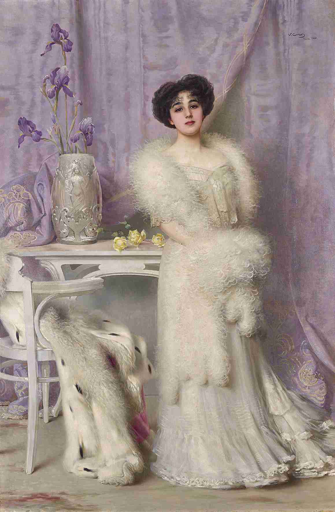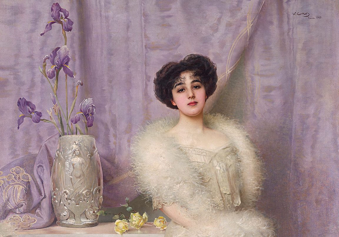 Uno dei top lot dell’asta è un capolavoro del pittore “da salone” Vittorio Matteo Corcos. Dipinto a Firenze nel 1903, il ritratto di Diane de la Bouchère, dama dell’alta borghesia italiana, è in pieno spirito Bella Epoque. L’uso generoso del pastello viola, pellicce di ermellino e di visone, pizzo bianco e orchidee, danno la sensazione dell’intenso e dolce profumo che avvolge la giovane signora (€ 120.000 – 160.000).