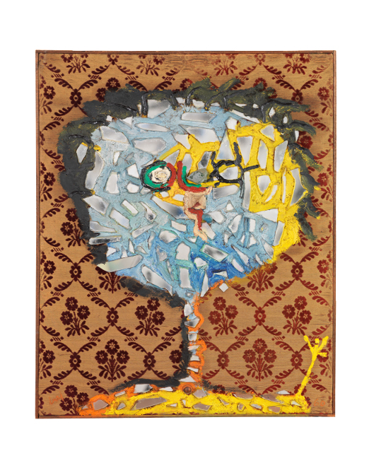 Con i mosaici di specchi l’artista crea i suoi celebri personaggi (A magic; Personaggio, 1960), mostri ironici e grotteschi (Ultracorpo allo specchio, 1960), coi quali contesta il milieu sociale e politico in cui si trova a vivere. Omini mostruosi ma anche meravigliosi, secondo la definizione antica di “monstruum”, poi ripresa da Alfred De Jarry, per cui ciò che spaventa porta con sé anche stupore e originale bellezza.