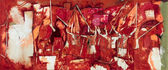 Dal punto di vista prettamente artistico il discorso è complesso. Non esiste un’arte del sessantotto ma una serie di correnti che lo precedono, gli corrono parallelamente e poi lo prolungano. Un rapporto in alcuni casi inconsapevole e nemmeno dichiarato che, nelle numerose differenze , si può sintetizzare banalmente in una sorta di purificazione catartica dalla contaminazione dei rassicuranti valori borghesi . Un’ esigenza purificatrice che aveva fatto capolino ben prima di quell’anno fatidico e che continua ancora oggi perché evidentemente non si è ancora compiuta. Esigenza purificatrice e di partecipazione. L’arte non vuole più raccontare gli eventi ma essere negli eventi. In quegli anni si contesta il primato del magico rettangolo della tela e si fanno strada quelle arti performative e installazioni varie che l’Arte Contemporanea odierna fa fatica a catalizzare in nuove e convincenti esperienze creative, anche se questo è un altro dibattito che esula dal contesto dell’esposizione.