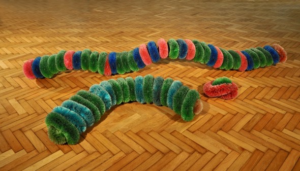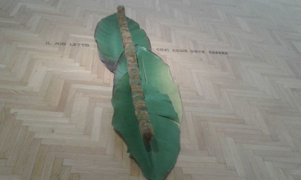 Il corredo didascalico è piuttosto scarno ma questa , immaginiamo , sia una precisa scelta in linea con la filosofia di Time is out of Joint e con quello spirito sessantottino che si ribellava a una narrazione storicista degli eventi come all’imposizione di interpretazioni dall’alto nell’Arte. A dirla tutta contestava anche i musei e le gallerie d’Arte a favore di performance collettive, ma questa è un’altra storia. Tuttavia, se per alcuni artisti più “riconoscibili” – ci vengono in mente Schifano, Boetti, Pascali , Pistoletto per citarne alcuni – il messaggio (o il no sense) che sottende l’opera si rivela con facilità, lo stesso non potrebbe accadere con altri . Questo però è un effetto collaterale di una precisa scelta che va a stimolare la ricerca personale e l’impatto emozionale dei visitatori e che ovviamente non riguarda solo la Galleria Nazionale. Del resto per il momento, i numeri di questa mostra, danno ragione alla Collu : oltre 3700 presenze il giorno dell’inaugurazione. Anche lo sforzo di attrarre i visitatori più giovani va apprezzato come nell’opening party con musica di quei tempi remixata in collaborazione con Radio2 .