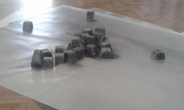 Il filo conduttore è una sorta di “elogio dell’ incompiuto” ovvero quello che è iniziato – in ogni campo della politica, della società e della cultura – e che potrebbe in fondo ancora compiersi. Attraverso il minimalismo , il concettuale, l’arte povera , la land art, la videoarte e le altre numerose correnti artistiche , la generazione di quegli anni ” decostruisce per ricostruire con modalità e materiali nuovi” come spiega la curatrice che, riguardo la mostra aggiunge : “Siamo riusciti a mettere insieme una selezione di altissimo livello. Si tratta un po’ della campionatura di un momento, naturalmente ci sono molte mancanze, ci sono molti artisti che non abbiamo potuto ottenere per ragioni diverse (…) l’idea era quella di restituire il clima del momento che arriva nel 1968 che però é soltanto l’acme di quello che é avvenuto anche prima. Non tutto accade per caso. Troverete dei legami molto forti anche con le mostre di Guttuso e la collezione di Palma Bucarelli (allestite nella Sala Aldovrandi n.d.r. della Galleria) perché non esiste una rottura unica. Esiste una trasformazione di linguaggi. “. In effetti dialoghi se ne possono trovare molti , anche con i vari capolavori esposti nelle varie sale della galleria perché é una rivoluzione che affonda le radici nelle prime avanguardie storiche. Ci si può sbizzarrire in giro per la Galleria a cercare contaminazioni anche con il post ’68. Ci viene subito in mente “Falce e martello” di Warhol , per esempio.