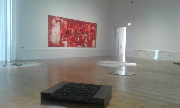 L’allestimento nella Sala Centrale è indubbiamente suggestivo. Ci sono opere dei maggiori esponenti di quegli anni frenetici e visionari che dialogano in grande armonia nel candore davvero catartico e iniziatico del grande salone illuminato dalle grandi vetrate. Del resto c’è anche un motivo storico che suggella questa unione : la Galleria Nazionale è un luogo simbolo del’ 68 italiano, a pochi passi dal teatro della Battaglia di Valle Giulia . Il percorso espositivo però non si esaurisce solo nelle opere esposte nella Sala Centrale : fanno parte della mostra anche alcune opere della collezione della Galleria Nazionale che per motivi logistici sono rimaste al loro posto nel percorso espositivo di “Time is Out of Joint” l’allestimento biennale della Galleria, che ha tolto qualsiasi punto di riferimento tematico e cronologico nell’intento di liberare nuove energie e nuove assonanze /contrasti tra i capolavori della collezione.